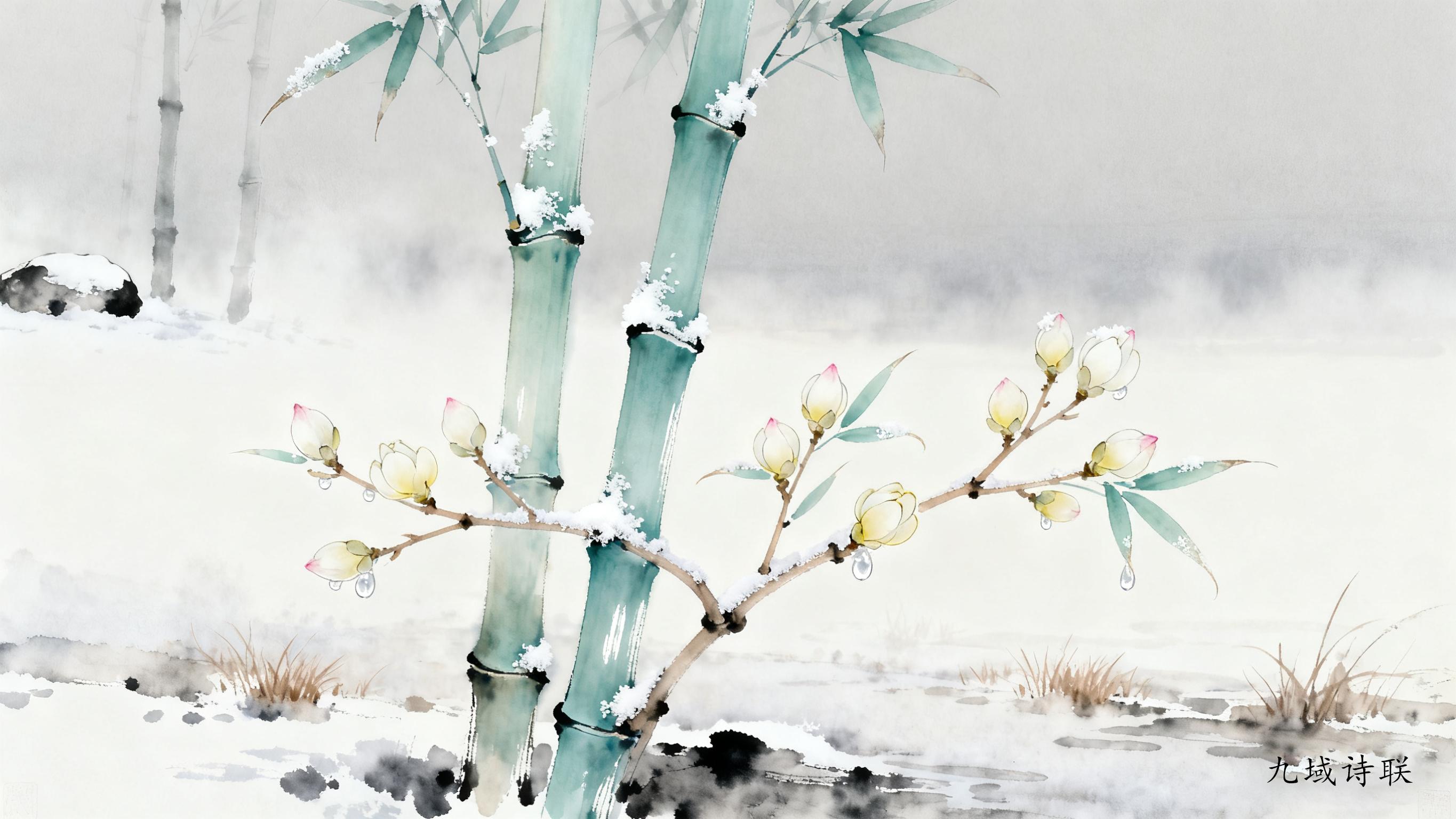 石径盘空云出岫,竹枝凝冷蕊含香。