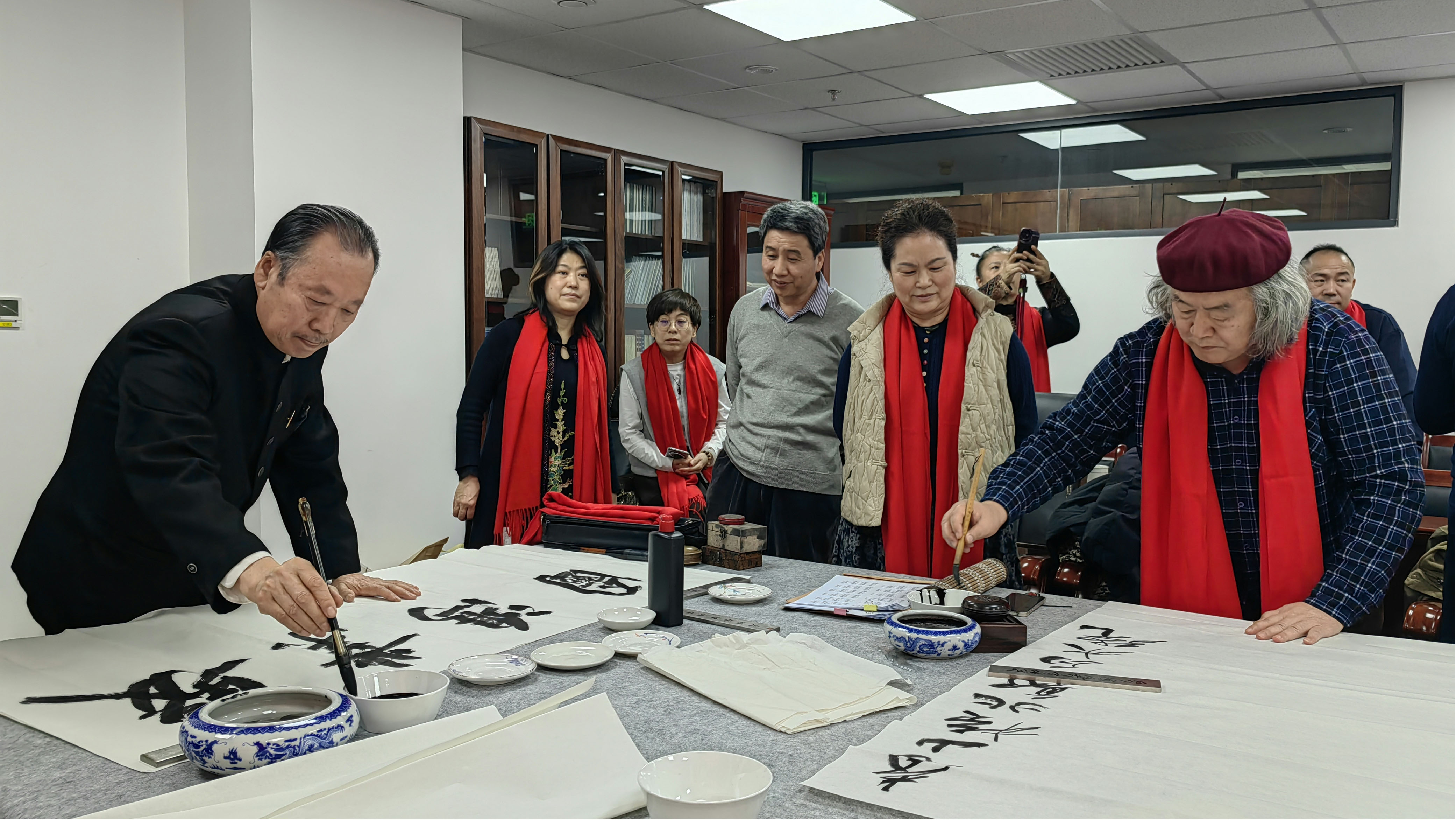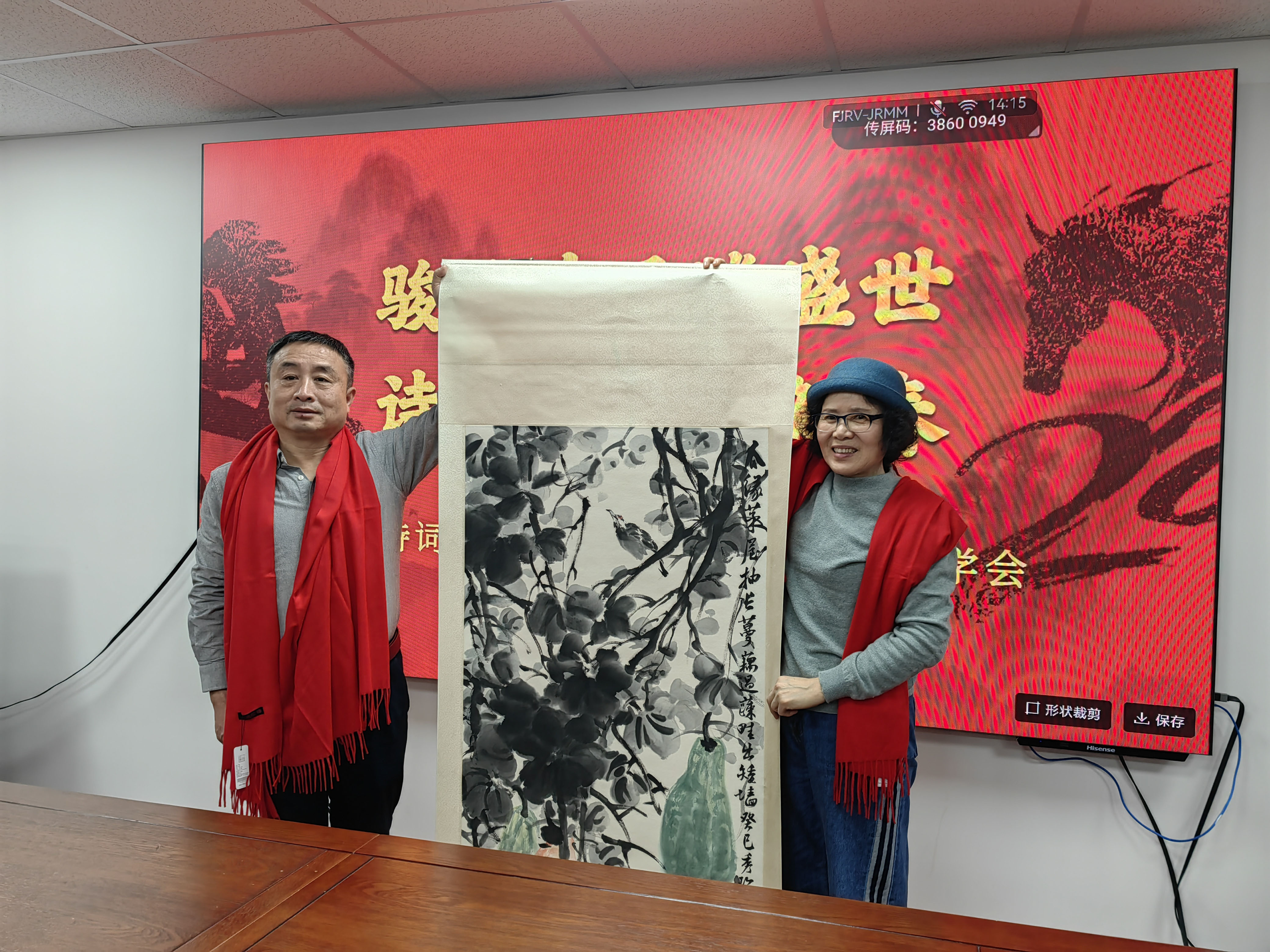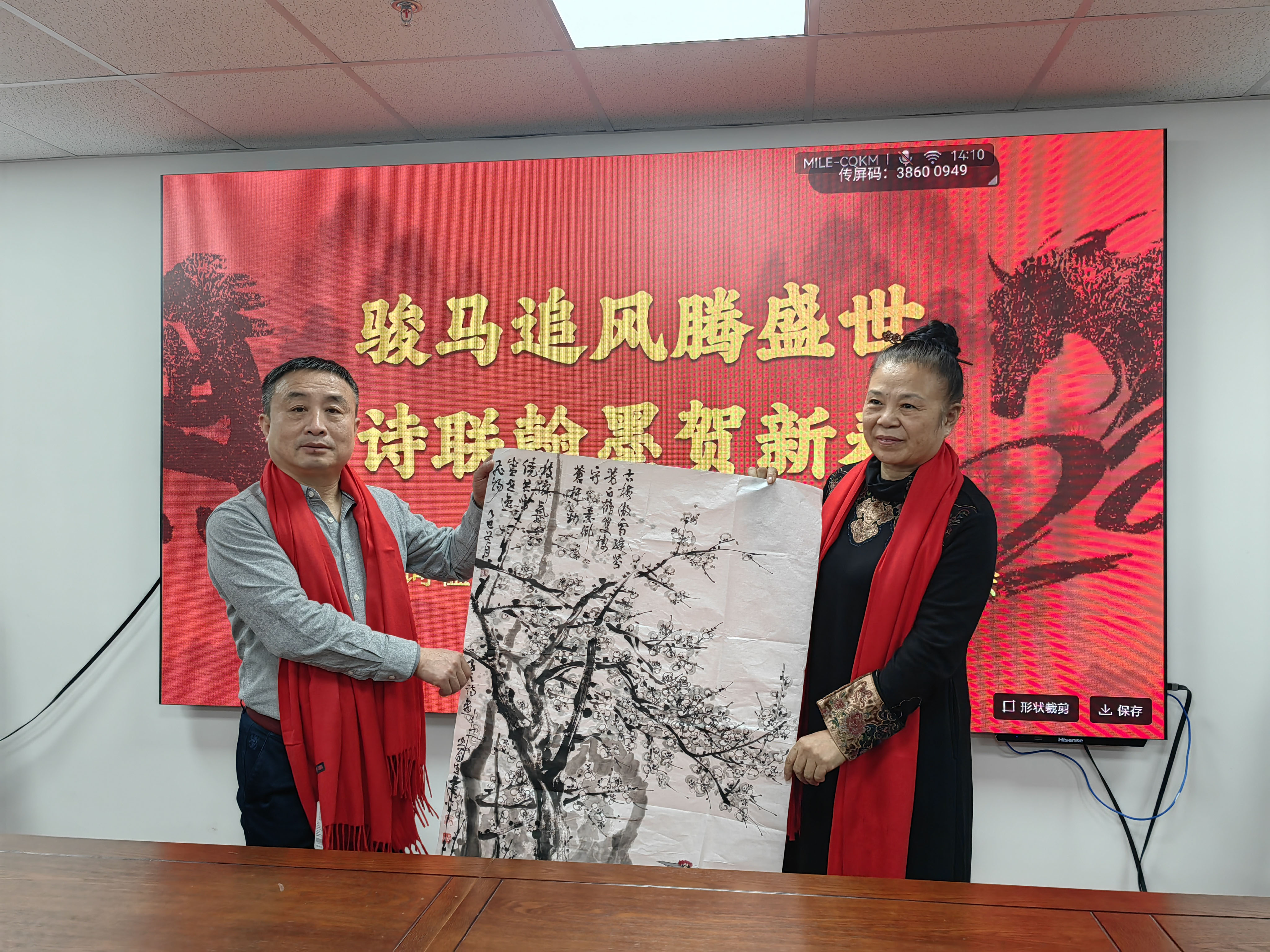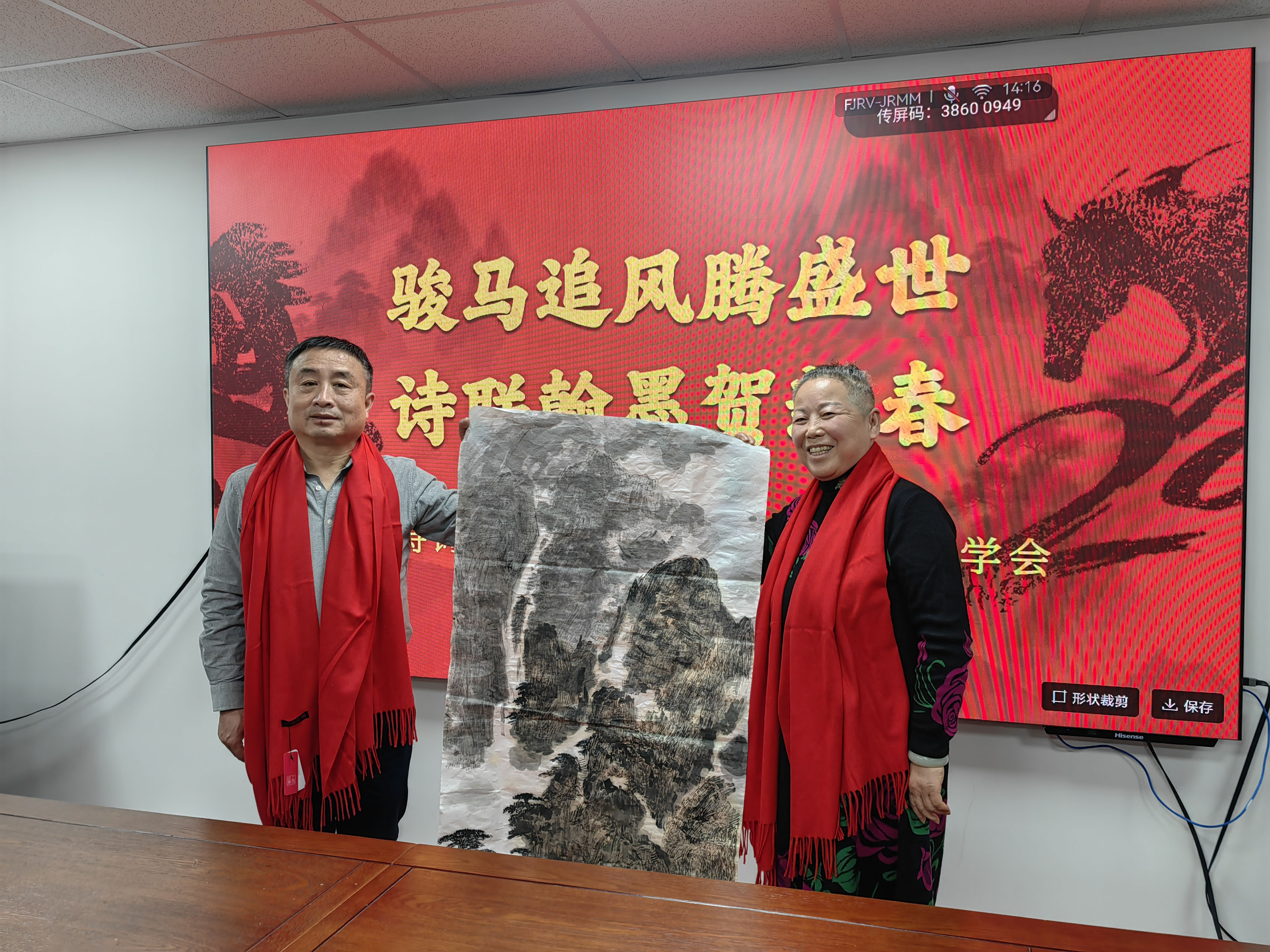 岁聿云暮,翰墨迎春。在马年新春佳节即将到来之际,由北京诗词楹联艺术中心理事长闫丽伟、办公室主任王子卿、常务副主任刘清沧带队的书画界艺术家一行20人,于1月12日下午走访中华诗词学会,开展“迎春送福”文化联谊活动,艺术中心秘书长吴明礼、运营部主任王艳及相关工作人员参加。中华诗词学会秘书长杭中华、办公室副主任薛玉忠以及学会机关、《中华诗词》杂志社的人员热情接待并参加了上述活动。