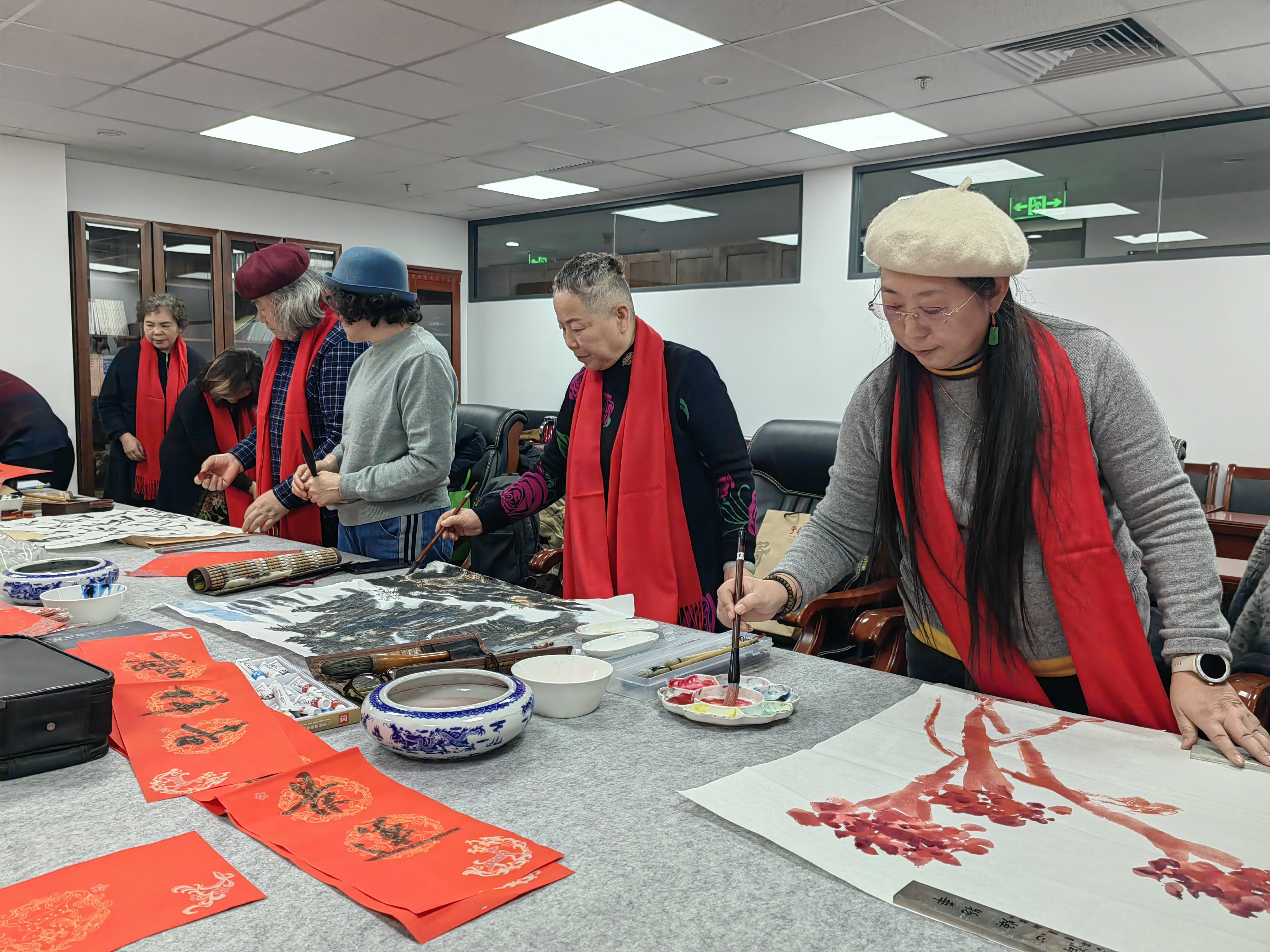时值三九隆冬,窗外寒意正浓,但中华诗词学会会议室内却暖意融融,洋溢着喜庆祥和的节日氛围。活动现场,书法家吴明礼、吴晓冬、张成银、战国权、邹贵生、王春山等挥毫泼墨,笔走龙蛇,一幅幅充满吉庆祝福的春联和“福”字完美呈现;画家胡桂琴、常美娟、于相珍、张馨文、董秀玲、李丽、刘亚等则以丹青妙手,绘就一幅幅生动雅致的迎春图景。