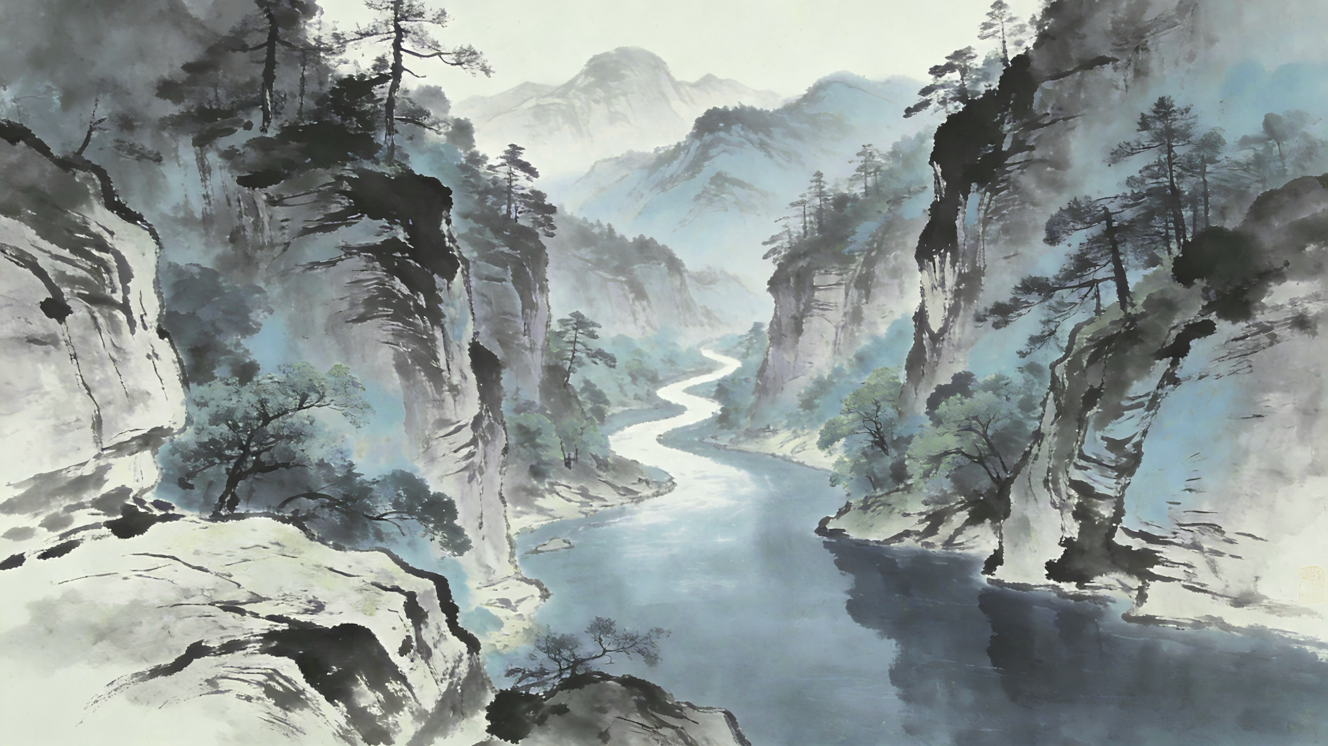 高壑千江玉龙舞,深林万径雁鸿遥。