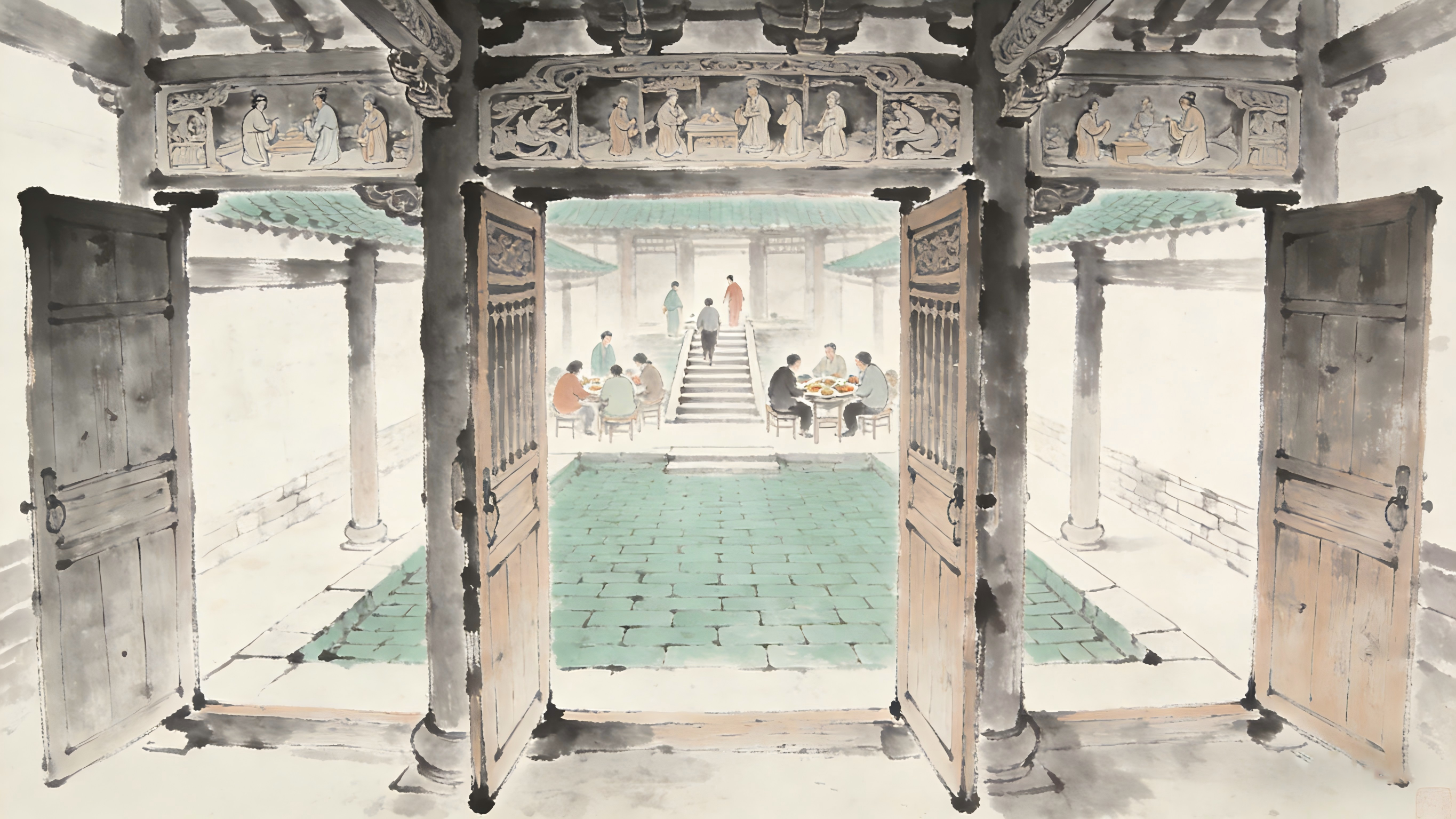 祖宅尘封远,今开两扇门。