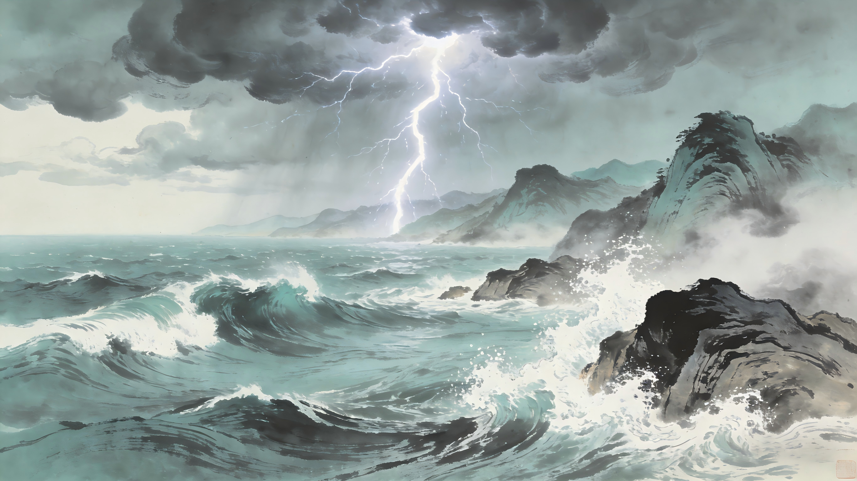 浪击山岩声震耳,清音欲荡旧尘埃。