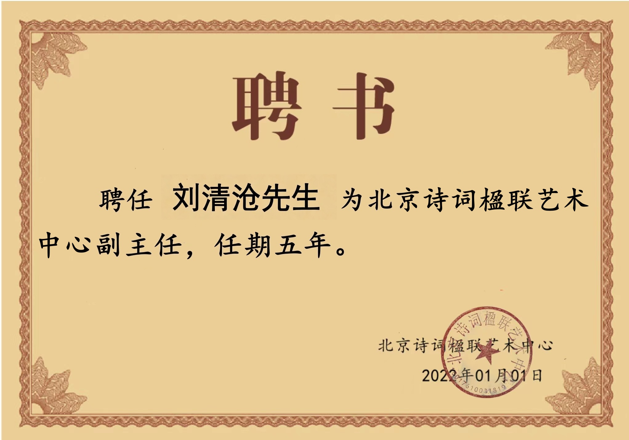 刘清沧,网名朝文暮语,河北沧州人,诗人、学者、作家,军事学硕士,军休干部,定居北京,现为北京诗词楹联艺术中心副主任,中华诗词学会会员,中华当代文学学会常务理事,《诗词世界》杂志签约诗人,《南都风采》微刊副总编。好读书不求甚解,醉文字笔耕不辍,在《光明日报》、《中国文化报》、《解放军报》、《火箭兵报》和《中华诗词》、《中华军旅诗词》、《后勤》、《长缨》、《汽车运用》、《诗词世界》等报刊杂志,发表理论文章、报告文学、诗歌散文、通讯报道等200多万字。诗词作品曾获诗词世界杯中华诗词大赛一等奖、天籁杯全国诗词大赛金奖、建军90周年全国诗文征稿特等奖、诗词世界2020年度优秀作品一等奖等,300余首诗词入选《中华好诗词》、《中国亲情诗典》、《中国当代诗词精选》、《诗词世界杯中华诗词大赛精品典藏》、《天籁之音》、《铭记历史》、《一路繁花》、《红崖》等书。