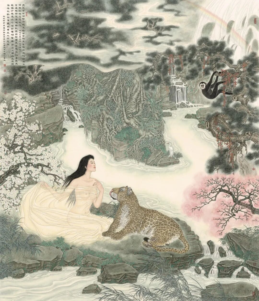 天不言而四时行,地不语而百物生。万物同源,和谐共生。神与物游,悠悠我心。因作此画并赋七律题之。
