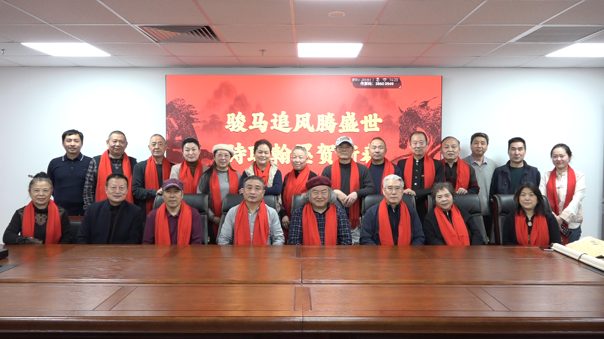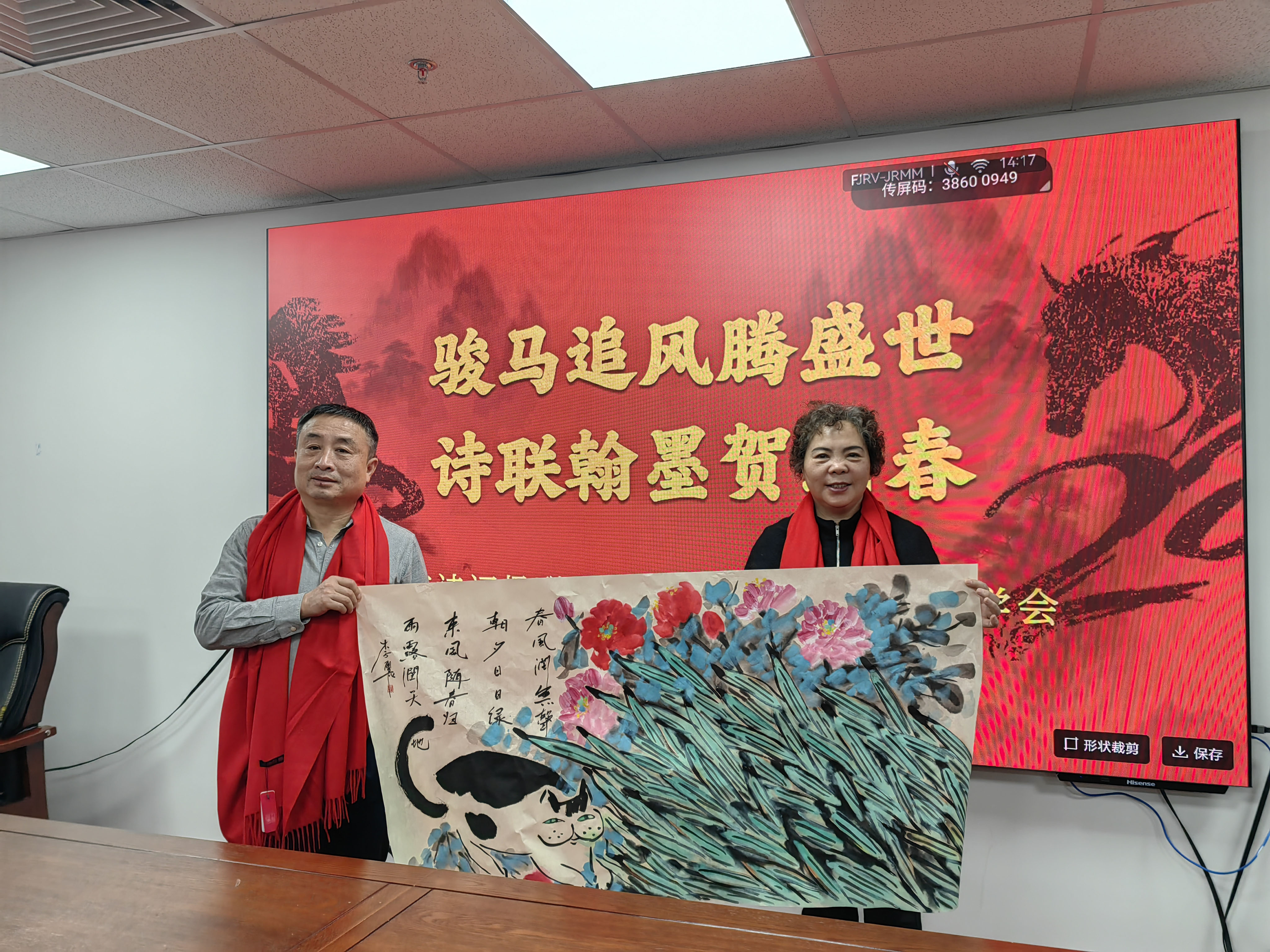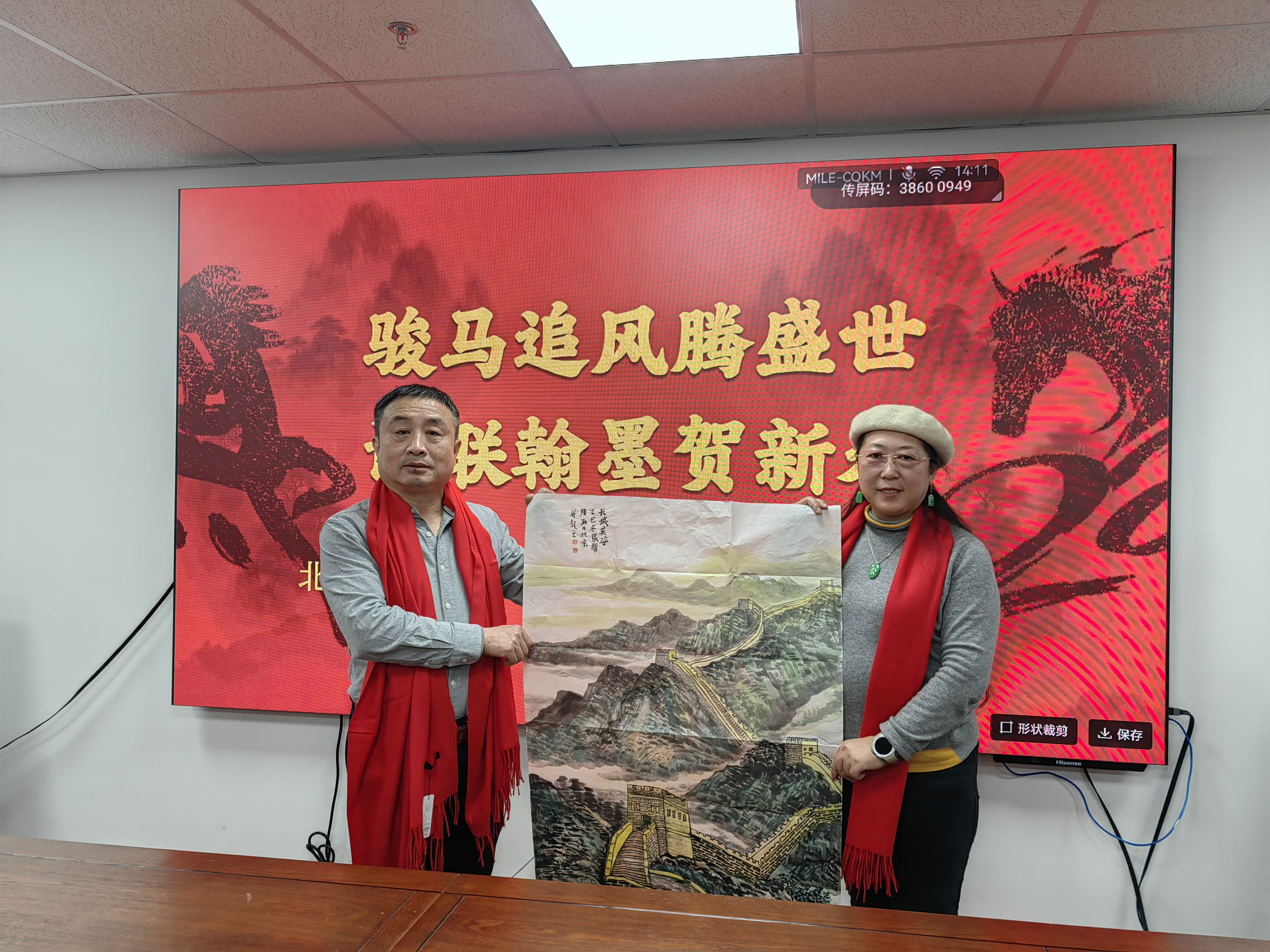 岁聿云暮,翰墨迎春。在马年新春佳节即将到来之际,由北京诗词楹联艺术中心理事长闫丽伟、办公室主任王子卿、常务副主任刘清沧带队的书画界艺术家一行20人,于1月12日下午走访中华诗词学会,开展“迎春送福”文化联谊活动,艺术中心秘书长吴明礼、运营部主任王艳及相关工作人员参加。中华诗词学会秘书长杭中华、办公室副主任薛玉忠以及学会机关、《中华诗词》杂志社的人员热情接待并参加了上述活动。