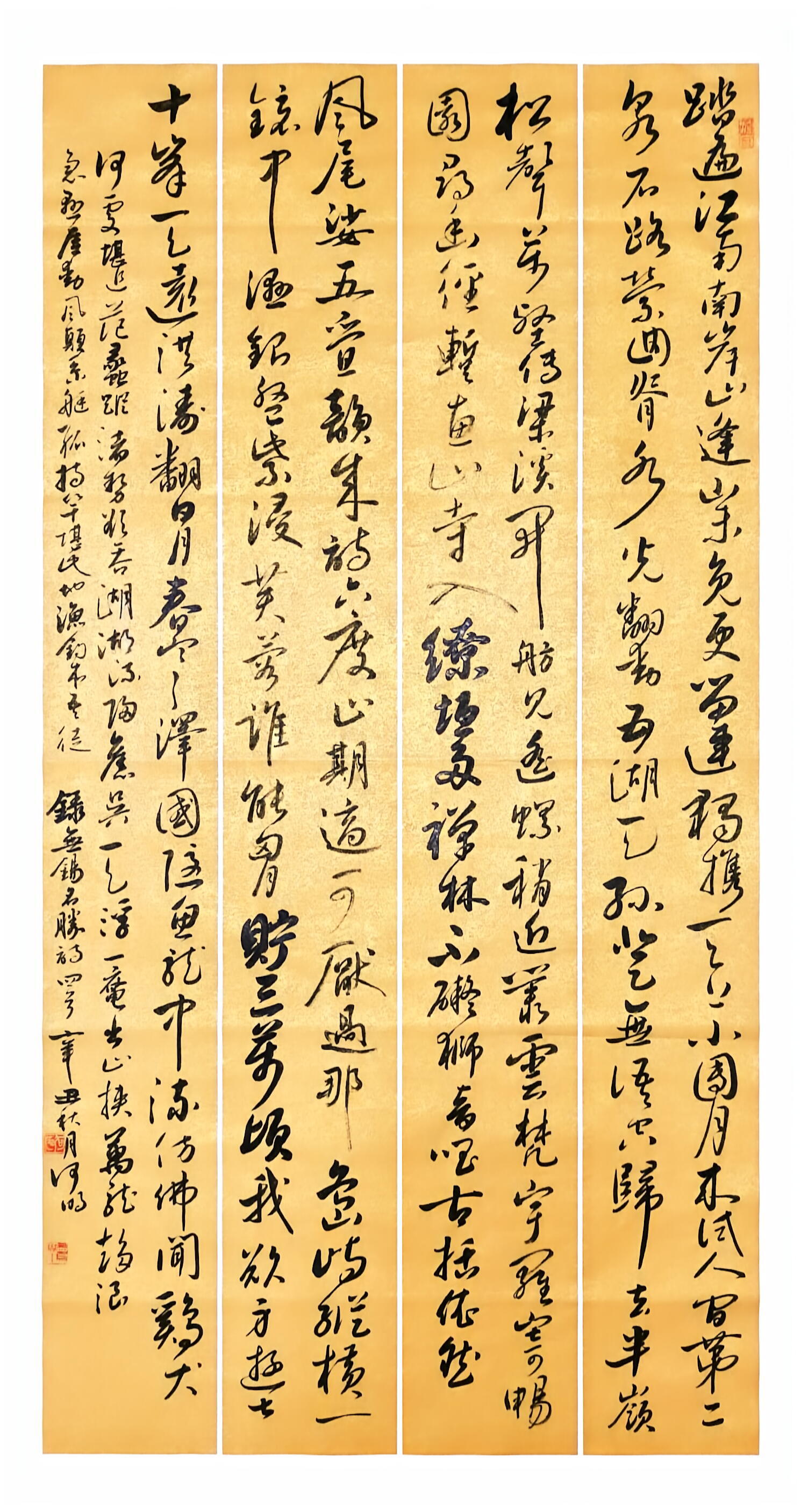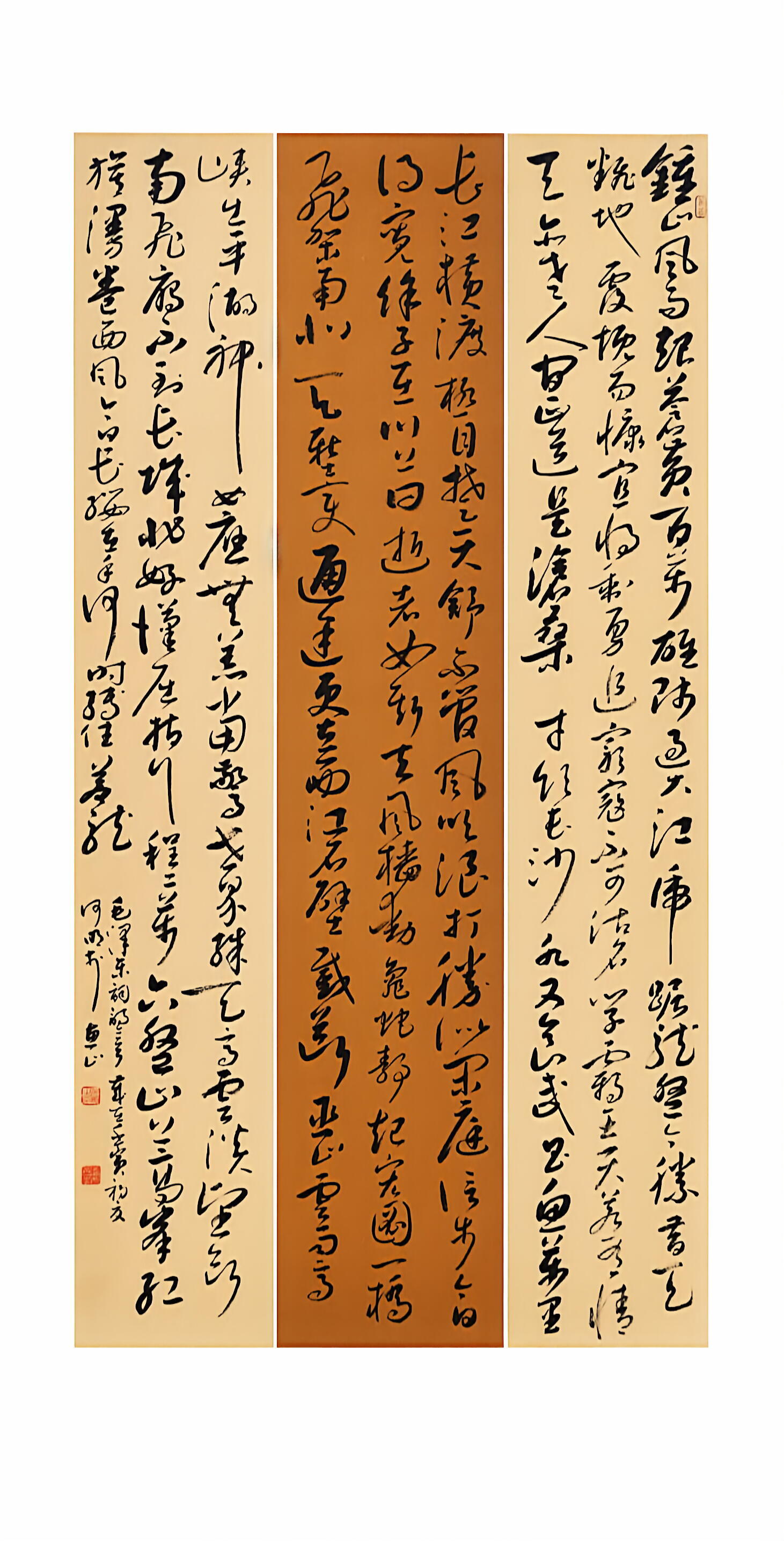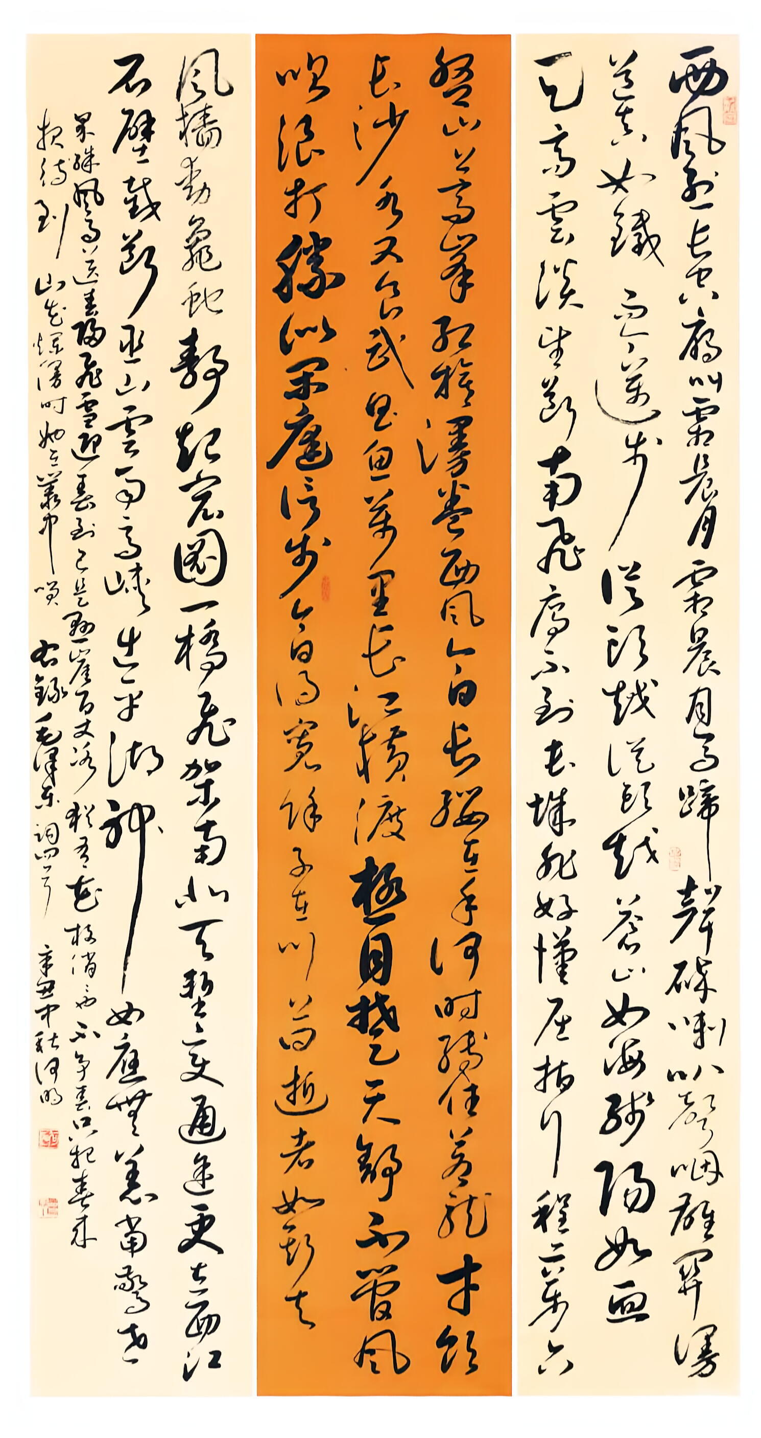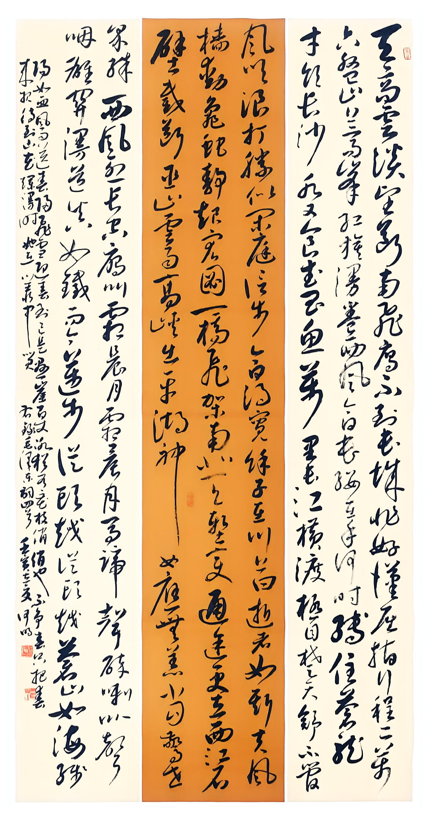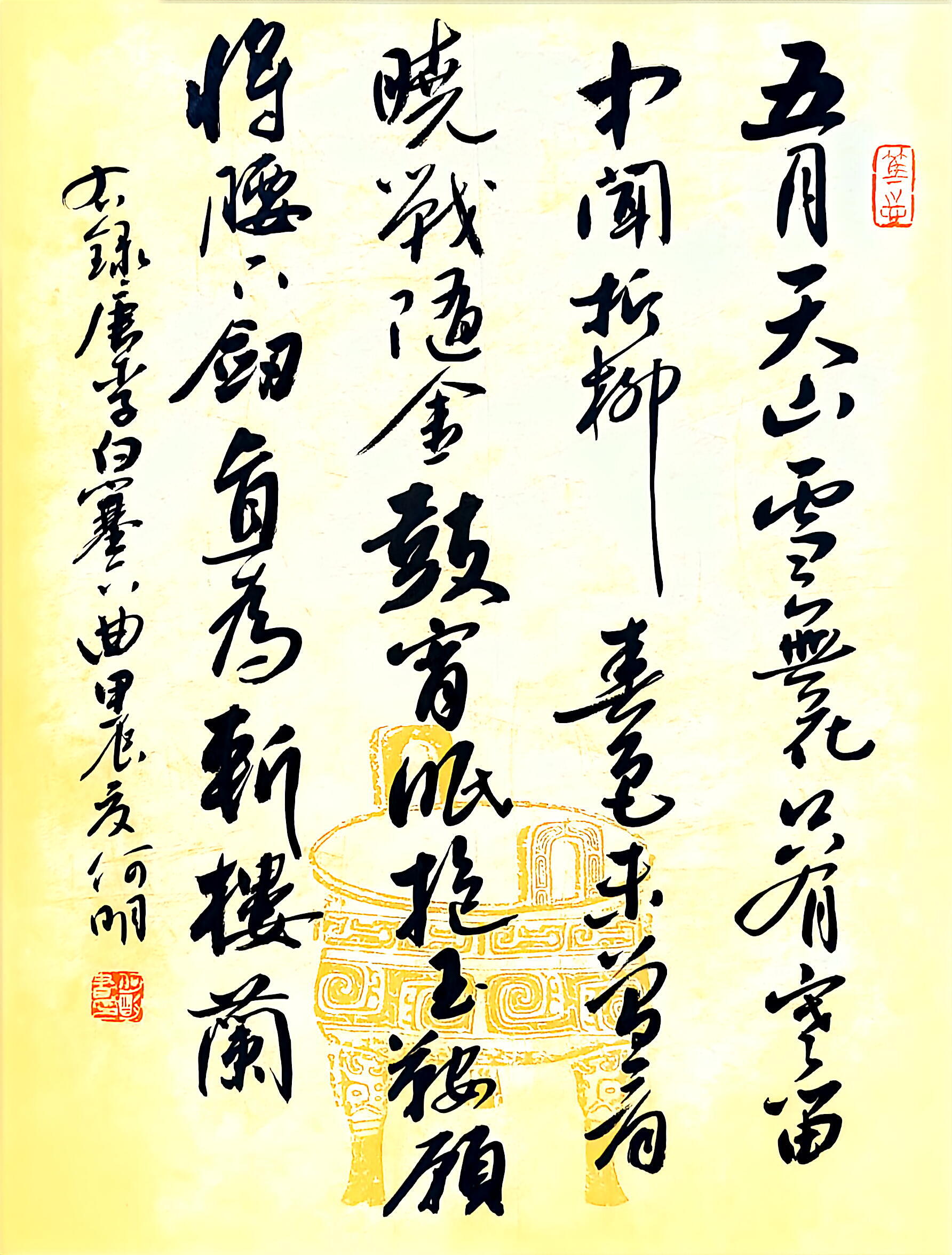 在书法创作上,何明深耕传统又勇于创新,博采众家之长,将历代名家笔韵与自身风格相融,形成了兼具传统韵味与个人特色的书风。他格外注重作品的内在气韵,精准把控笔法、墨色、章法,平衡传统与创新、刚与柔、虚与实的关系,让笔墨层次丰富、意境悠远。
