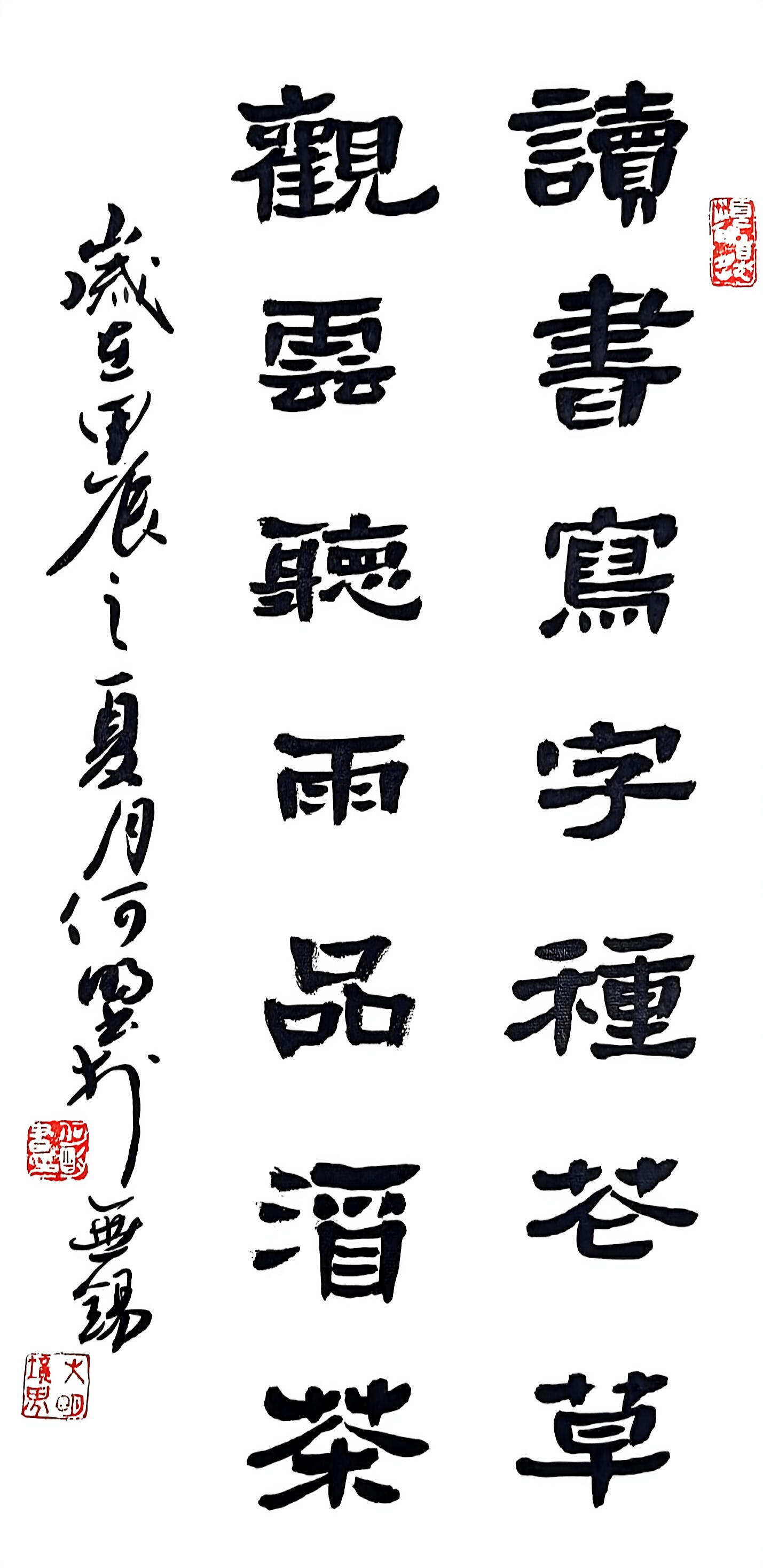 半生笔墨相伴,一路初心不改。何明在深耕书法艺术的同时,始终怀揣文化担当,积极践行公益。他常年走进社区、校园、乡村,参与义务写春联、公益书法课堂、文化下乡等活动,手把手向群众、青少年传授书法技艺,毫无保留地分享习书心得。他用笔墨传递温暖,以行动传承国粹,用自身坚守让传统书法文化走进大众、扎根基层,这份无私的情怀与精湛的技艺,赢得了各界的广泛赞誉。