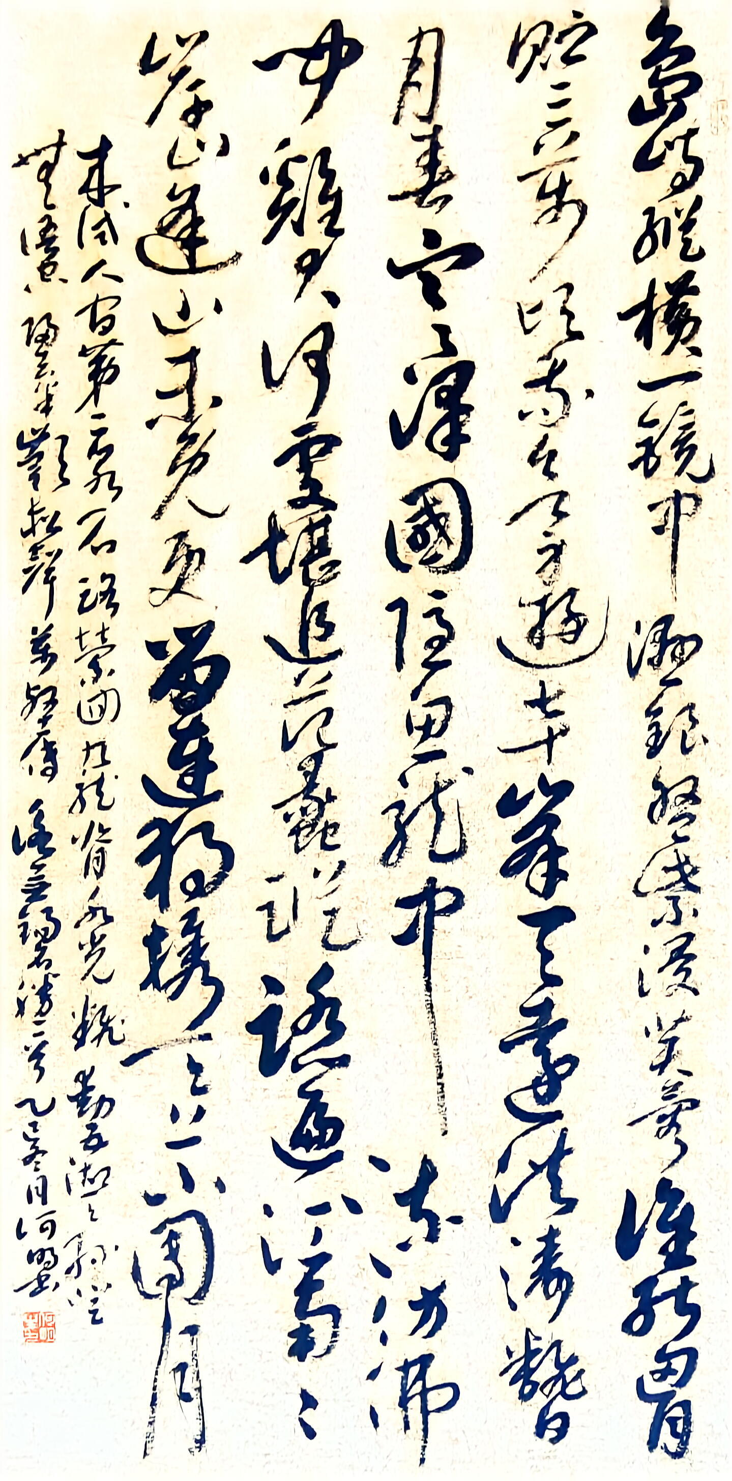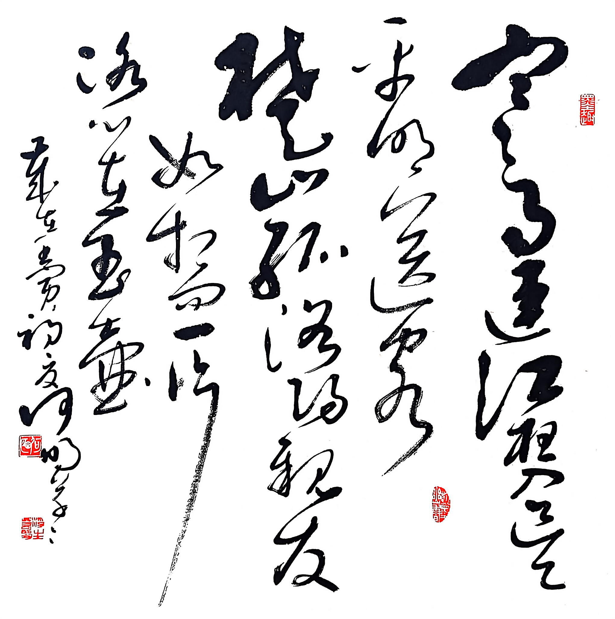 他尤擅小草,潜心临摹王羲之《十七帖》、怀素诸帖,深挖《书谱》笔墨精髓,做到心笔合一、笔随意走。其行草书作品以晋代法帖为根基,兼具《兰亭序》的灵动、米芾的清逸,既有怀素草书的瘦劲,又有张旭草书的丰腴,运笔起伏精妙、洒脱自然,无刻意造作之态,尽显文人书法的清雅真趣。笔墨疾行时气势酣畅,缓行时韵味悠长,笔力扎实、布局精巧,作品淳雅高洁、灵动大气,既传承古法精髓,又独具艺术魅力,深受广大书法爱好者的喜爱与认可。