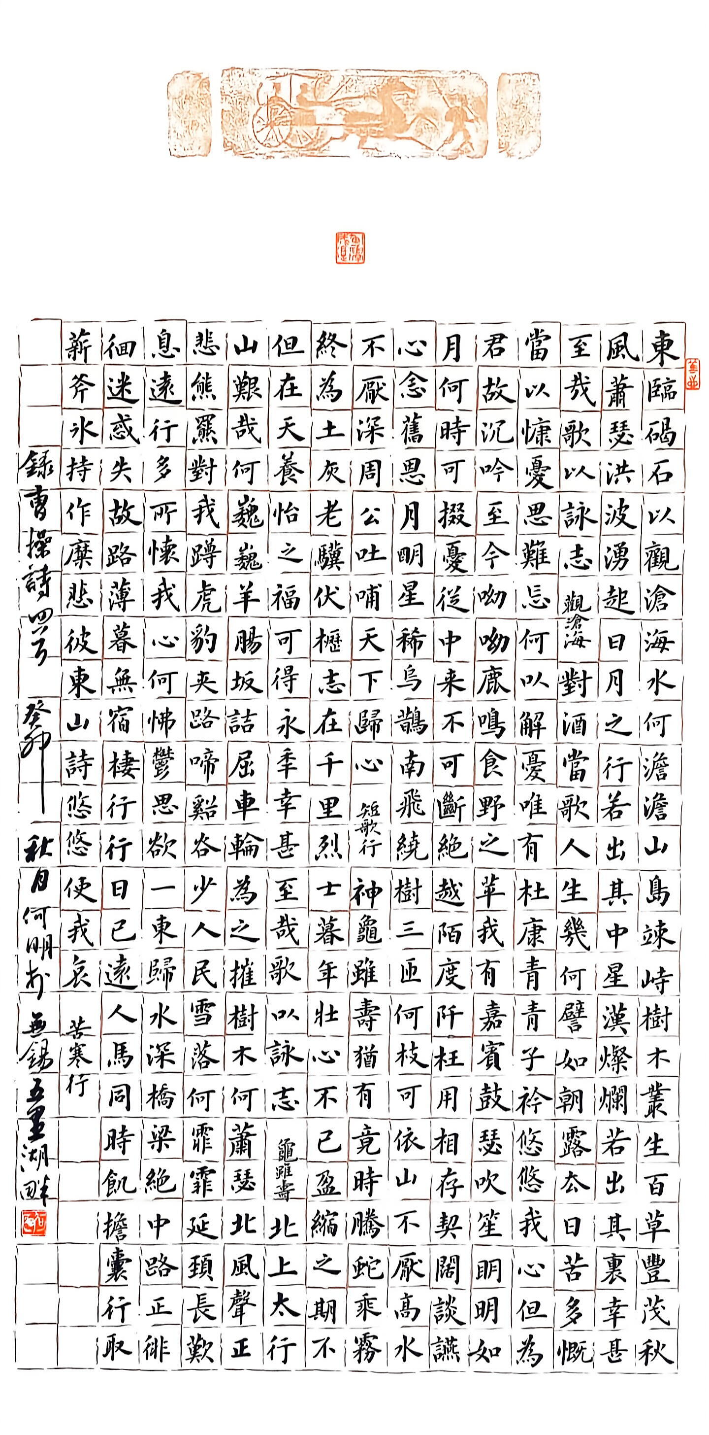 多年来,何明始终坚信书法没有捷径,唯有沉心钻研、持之以恒,方能学有所成。他以古训自勉,坚持每日临帖,从历代经典碑帖中汲取养分,推敲笔法、领悟神韵,一个笔画不满意便反复练习百遍,直至精益求精。他潜心研读书法理论,钻研名家笔墨精髓,在临摹中传承经典,在思考中沉淀心得,在苦练中不断提升,日积月累的付出,让他的书法功底愈发深厚,笔力愈发沉稳。凭借扎实的技艺,他的作品多次在全国、省、市及军队书法展览中获奖入展,2010年,他成功加入中国书法家协会,正式跻身专业书法艺术领域。