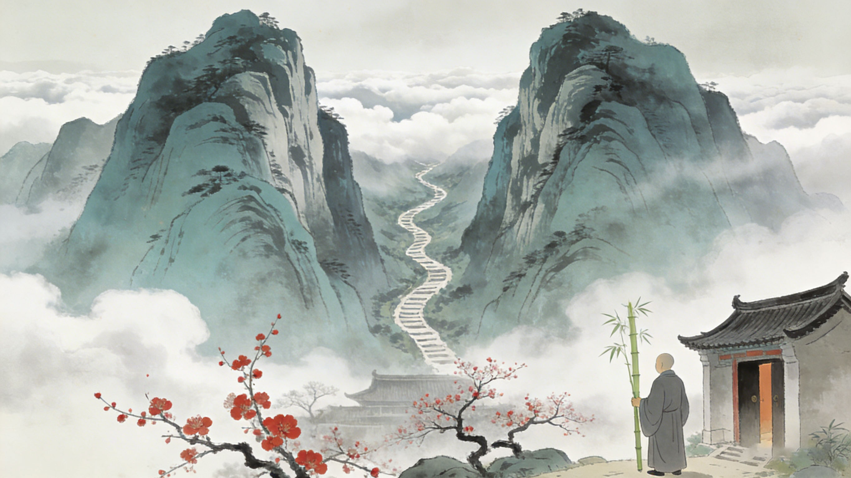 两岳势挺拔,云中天路狭。