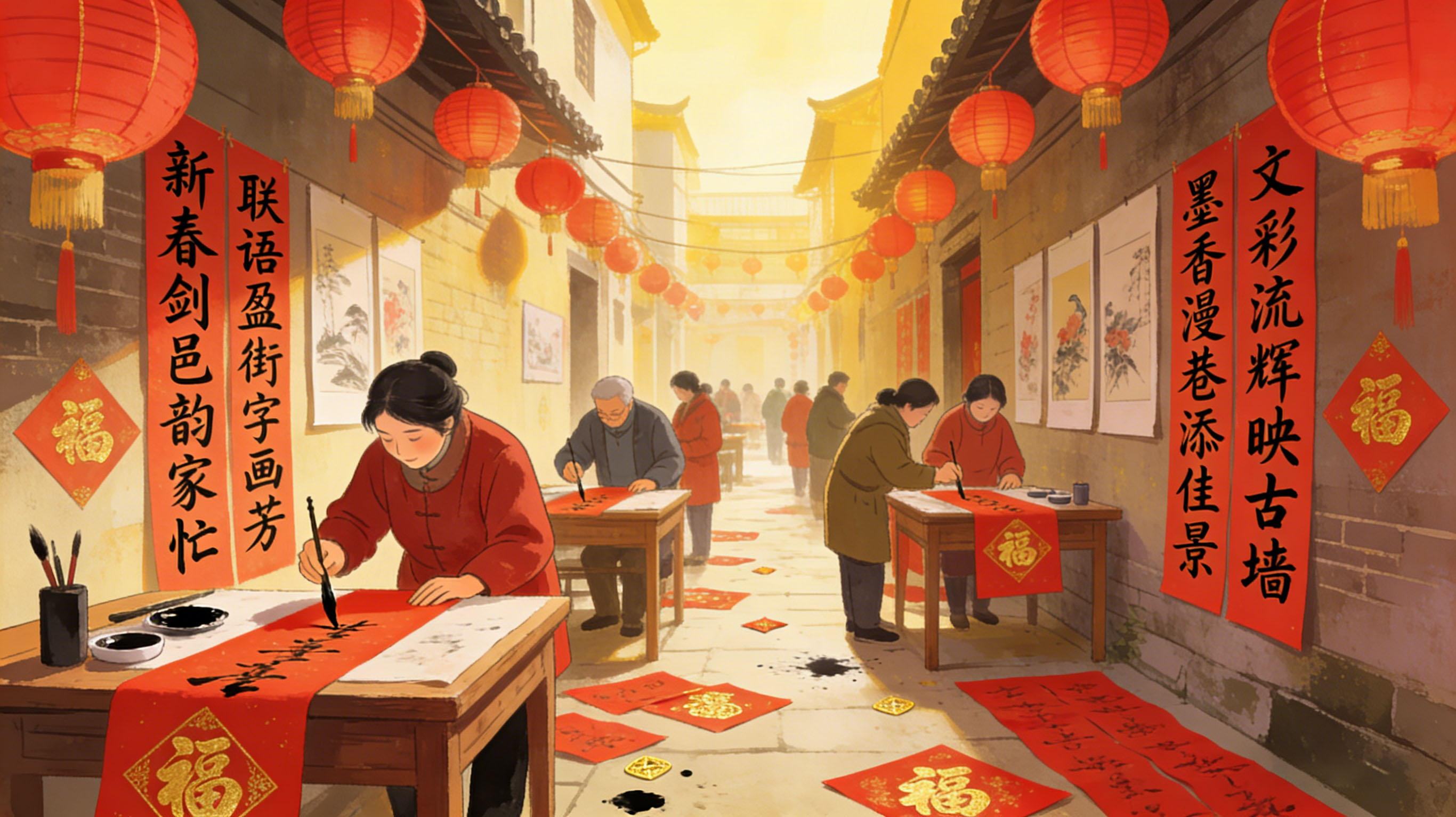 墨香漫巷添佳景,文彩流辉映古墙。