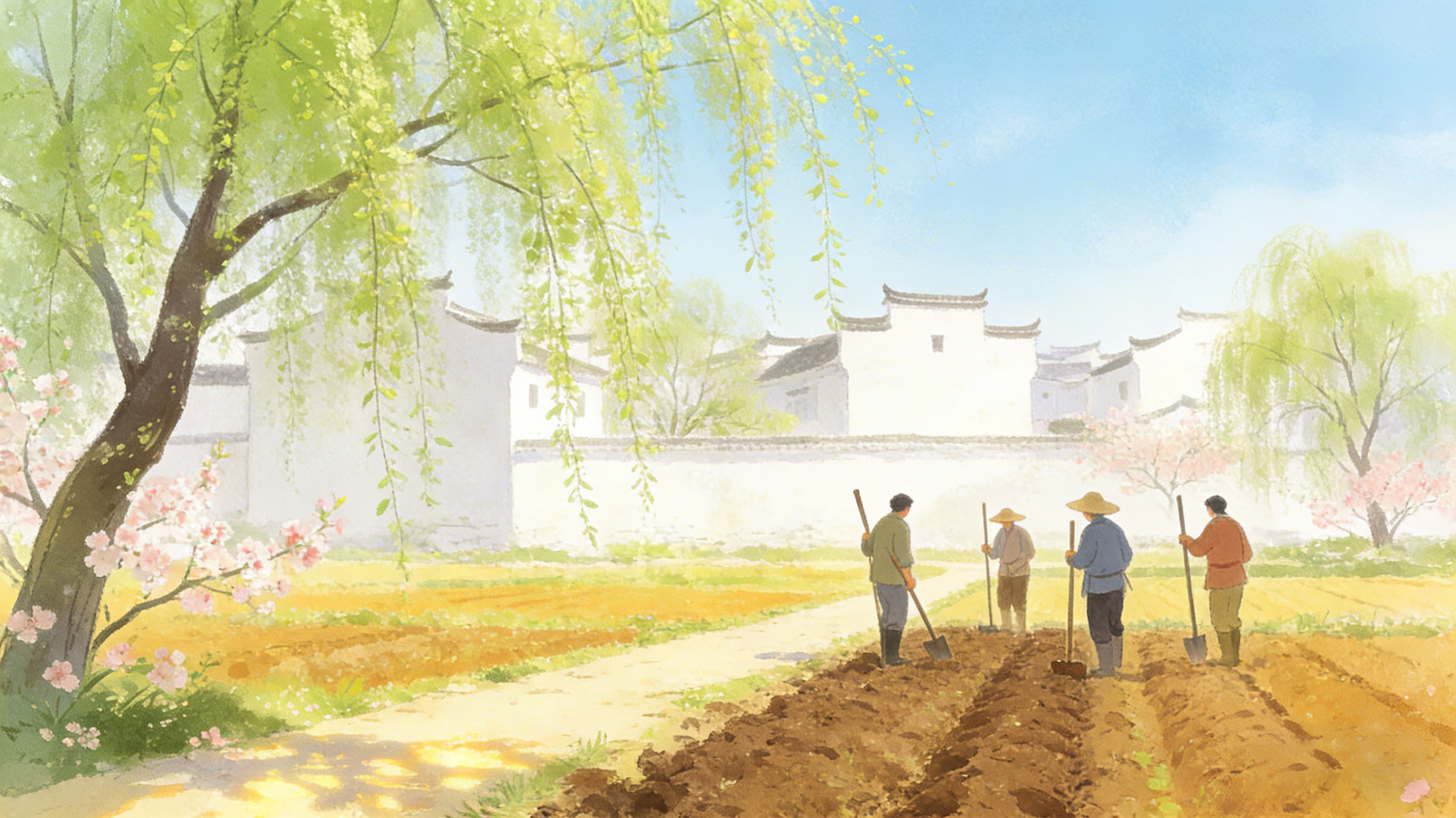 紫燕翻飞时乍冷,农人陌上待耕田。