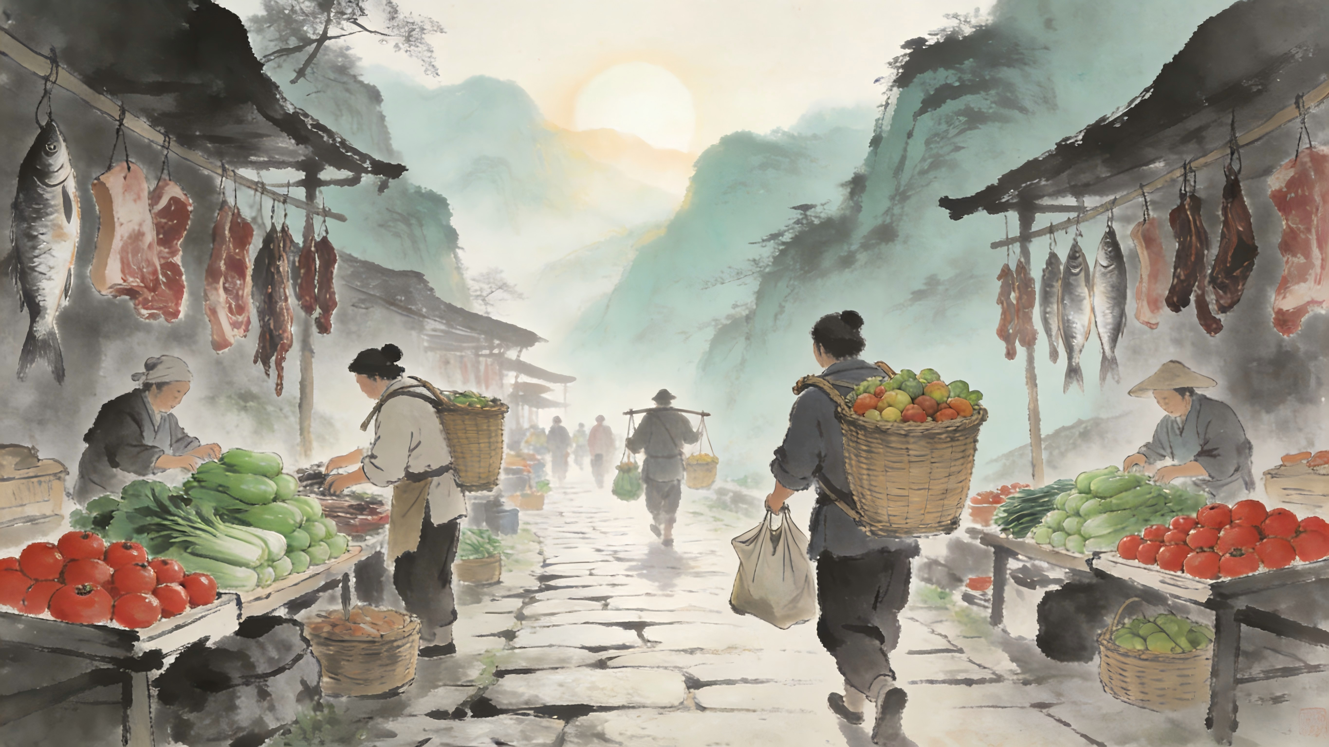 满载回望喧闹里,一篮烟火总关情。
