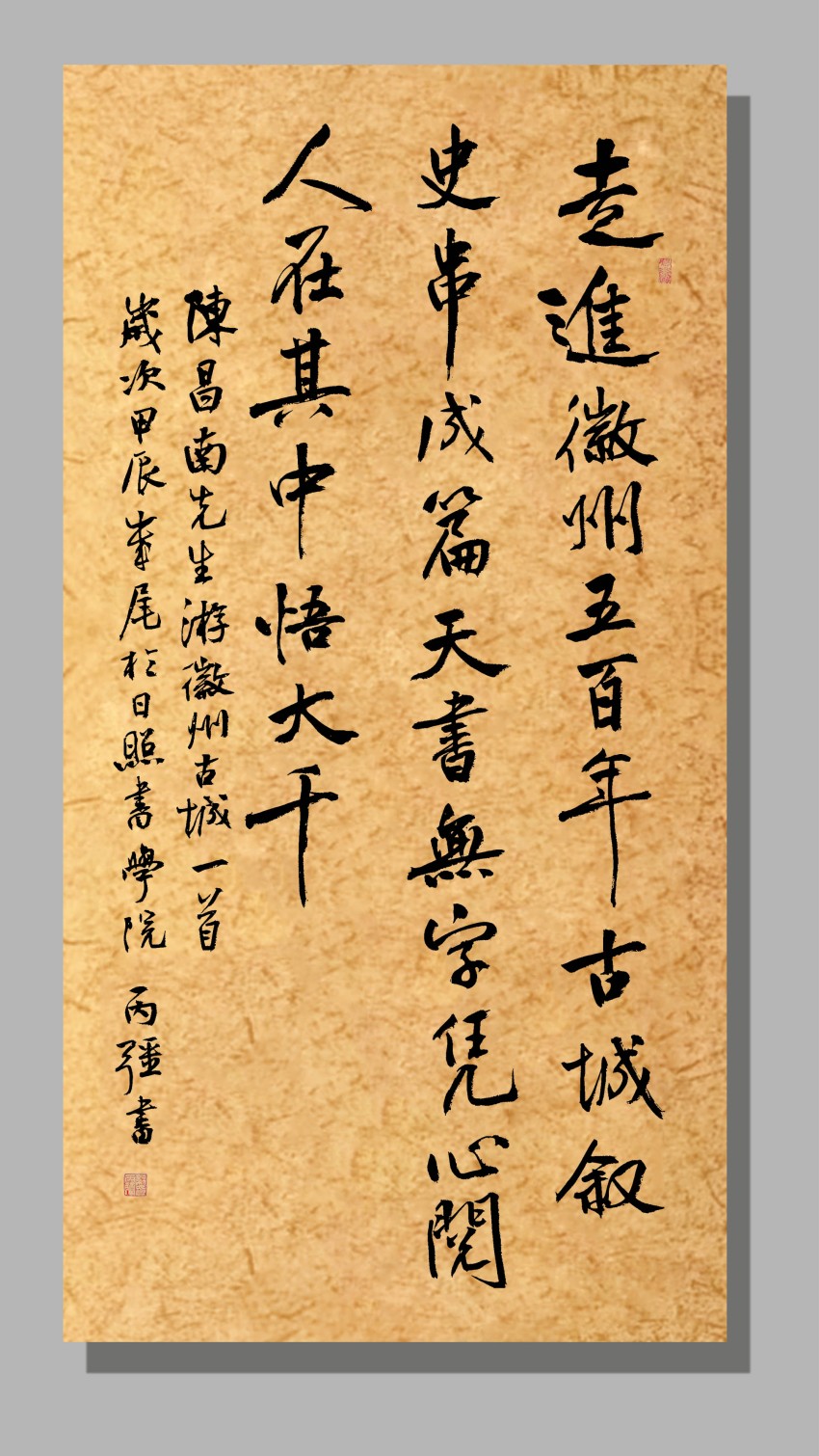 旭日曈曈驱雾散,抚摩棠樾沧桑。逶迤东路七牌坊。一门旌表范,今日续荣光。 气宇轩昂天地立,身经骤雨严霜。无言昭告世人方。持家行孝道,于国尽忠良。