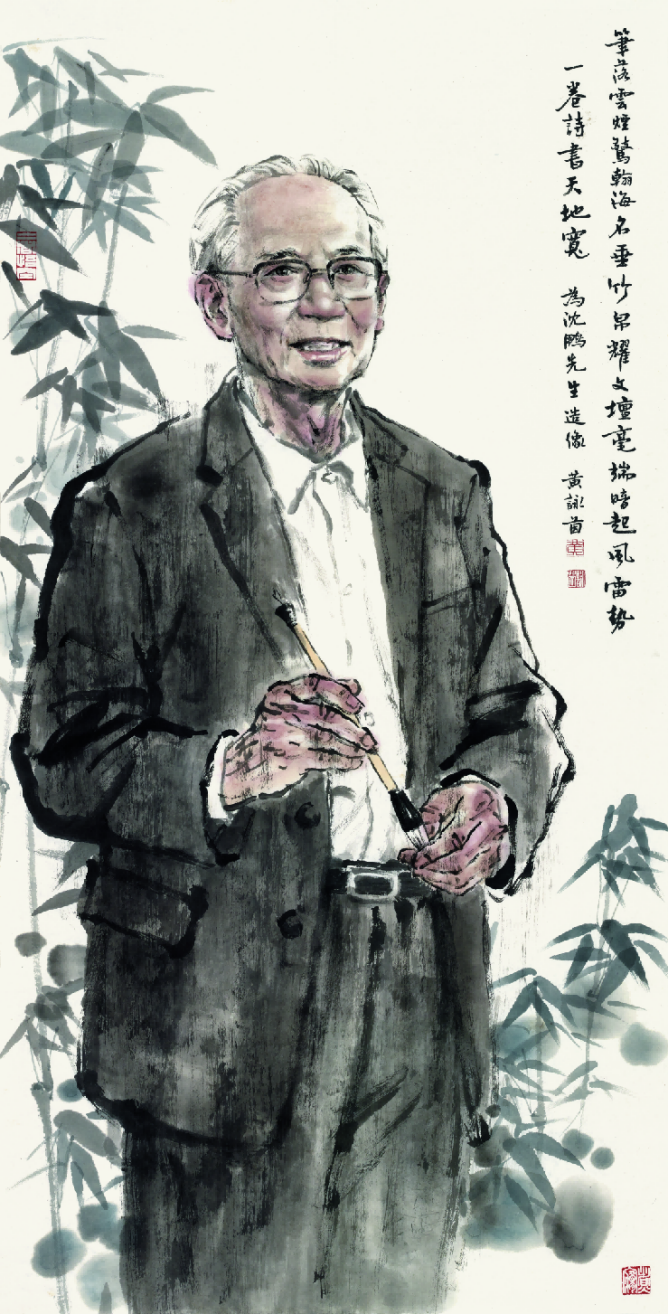 黄咏茵 《为沈鹏先生造像》 纸本设色 136cm×70cm