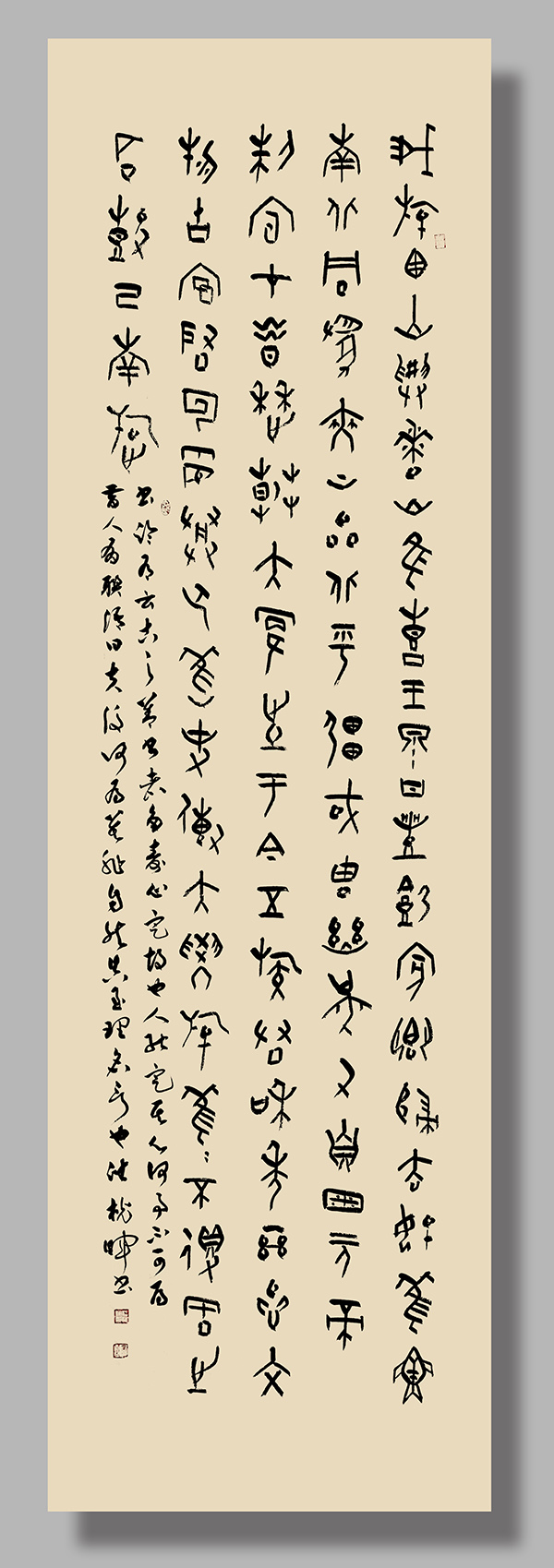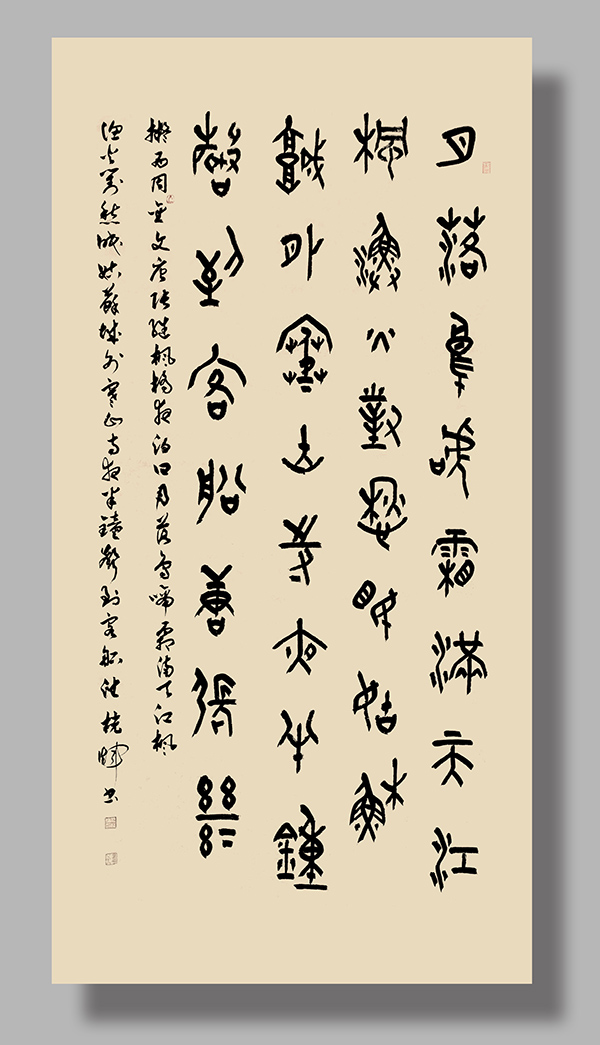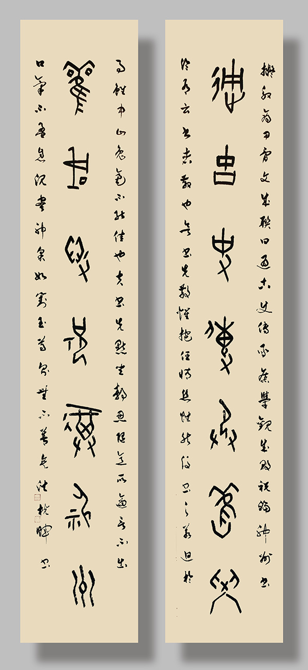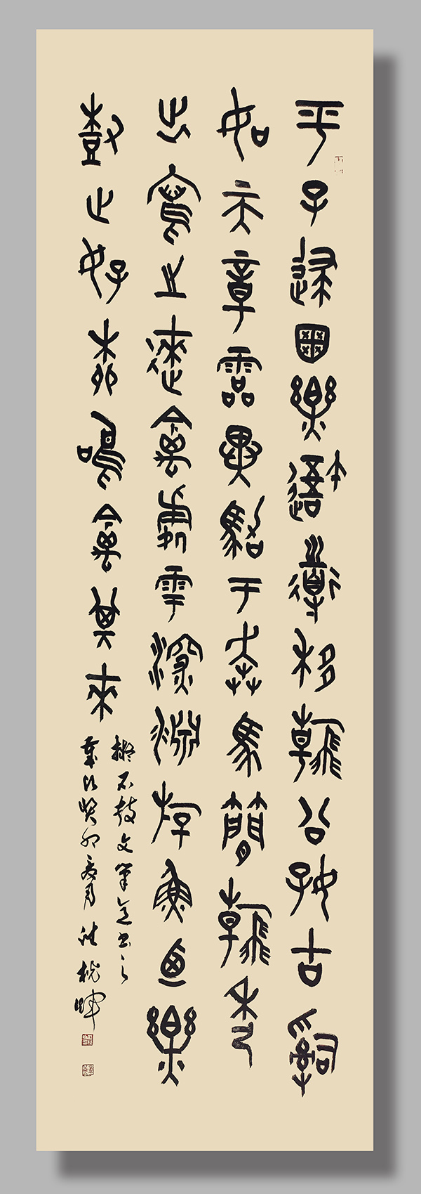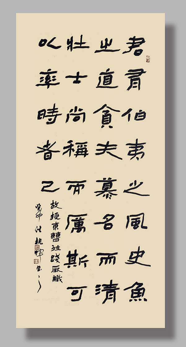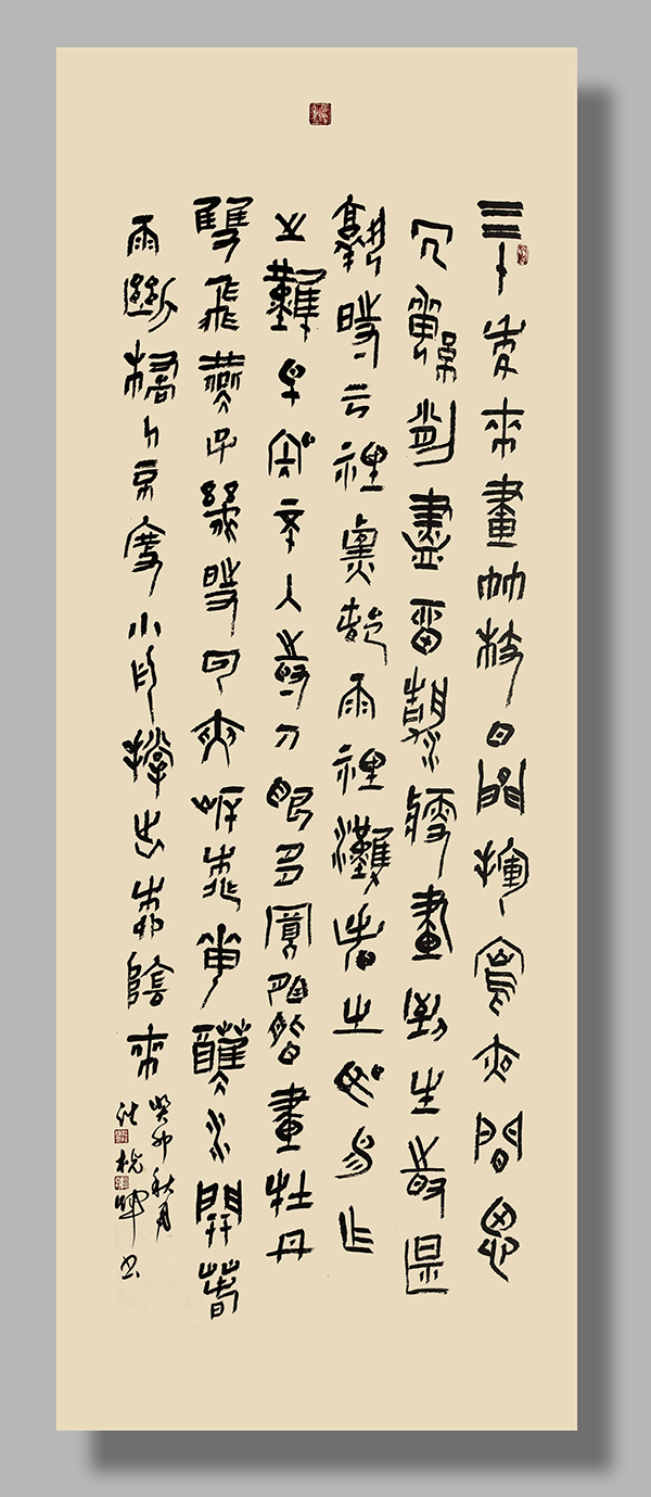 潘桄辉,别署抱一堂,一九六三年生于山东寿光,师从著名书法家傅亚成老师,2017鼎甲班高研班学员,三十年临池不辍,于篆隶用功尤勤。先后涉猎《毛公鼎》、《颂鼎》、《克鼎》、《散氏盘》、《大盂鼎》等两周吉金铭文,追求质朴古拙、雍容典雅之书风。 作品2013年入展中国书法家协会主办的首届“沙孟海杯”全国书法篆刻作品展、2014年入展第三届“四堂杯”全国书法大展,第二届“米芾杯”全国青少年教师作品展优秀(米芾奖)奖,米芾杯国际书法大赛学生取得三连冠,连续六届优秀书法指导老师,连续六次入展兰亭雅集,书法报社主办,入展“中国字,世界情”甲骨文大赛, 现为中国书法家协会会员,潍坊科技学院客座教授,中国楹联学会书画委员会委员,中国甲骨文书法艺术研究会副秘书长,寿光市书法家协会副主席。
