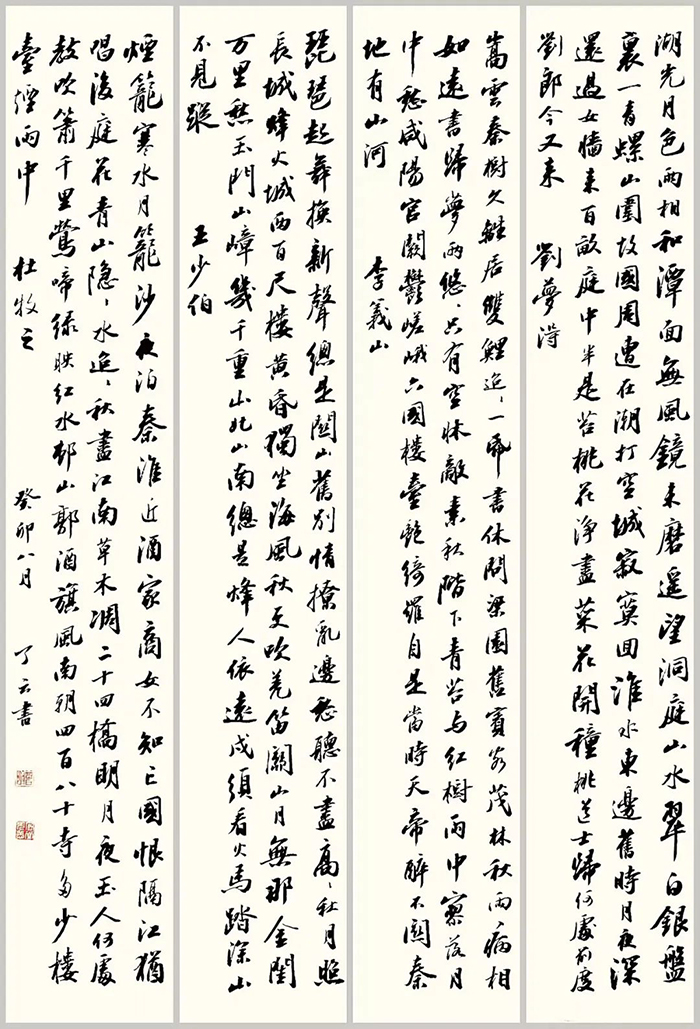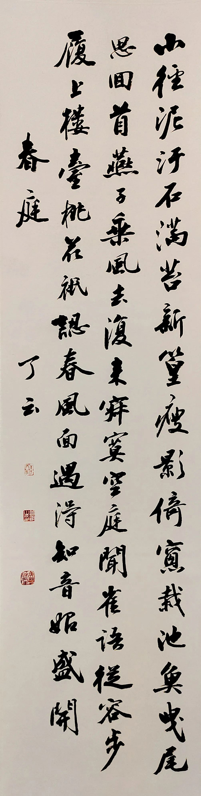 曾明 笔名了云、寄堂,1956年生于上海,祖籍湖南长沙,原江南造船集团公司宣传部长,中国书法家协会会员。少承家训,学习诗词书法。诗词散见于各公众号。书法曾参与国内外展览并获奖,亦有书法篆刻论文发表出版。书法初学碑,后有由苏体入帖。篆刻从秦汉入,参胡菊邻法。现退休赋闲,以诗文书印自娱。