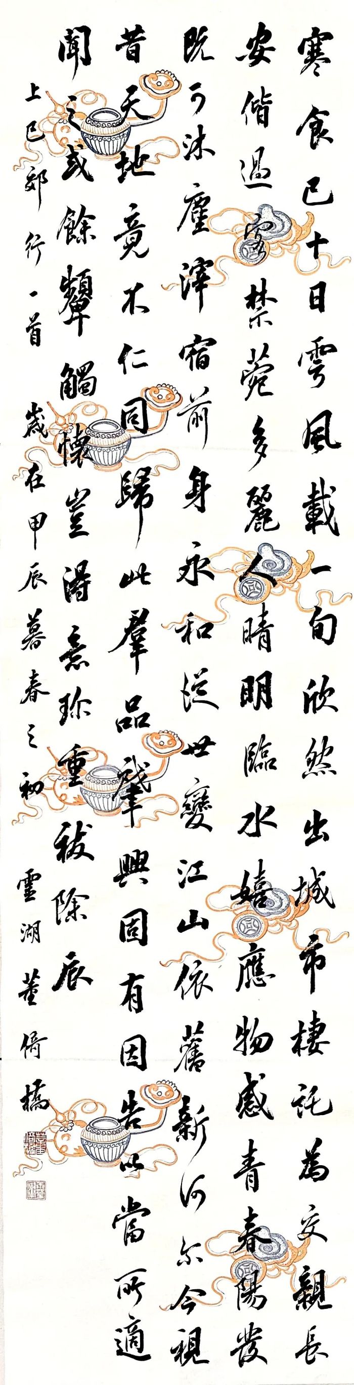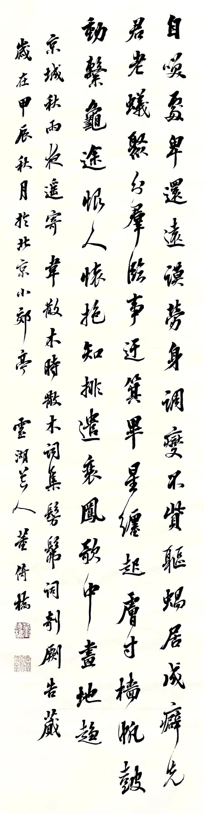 董倚桥,字兰溪,号灵湖,别署巧工司马。1974年生,山东莱阳人,现居北京,供职于中国书法家协会书法培训中心。民革党员、中国书法家协会会员,著有《灵湖诗稿》《小铁如意馆笔记》《灵湖楹帖集》《衲苏集》。