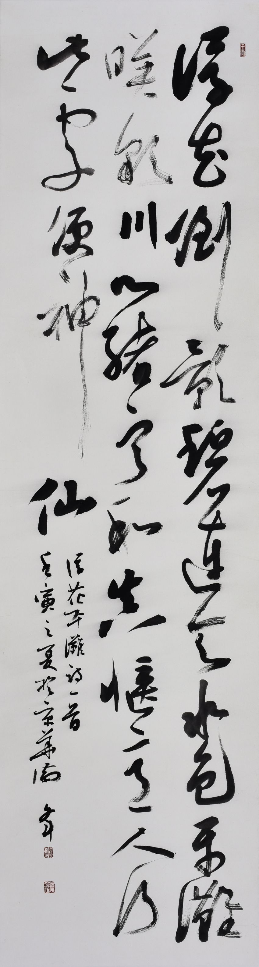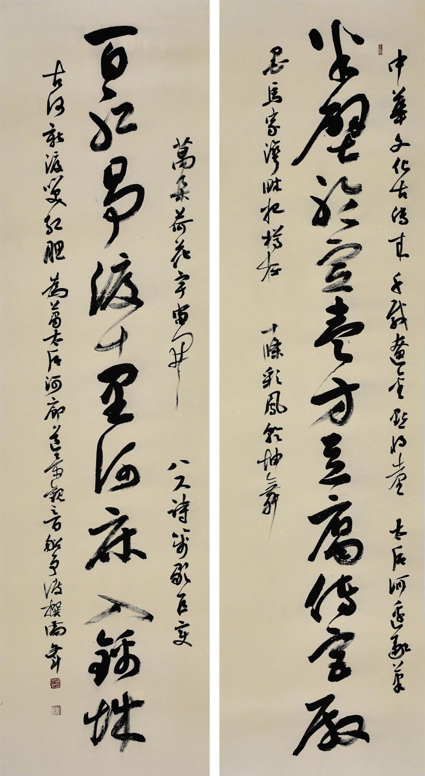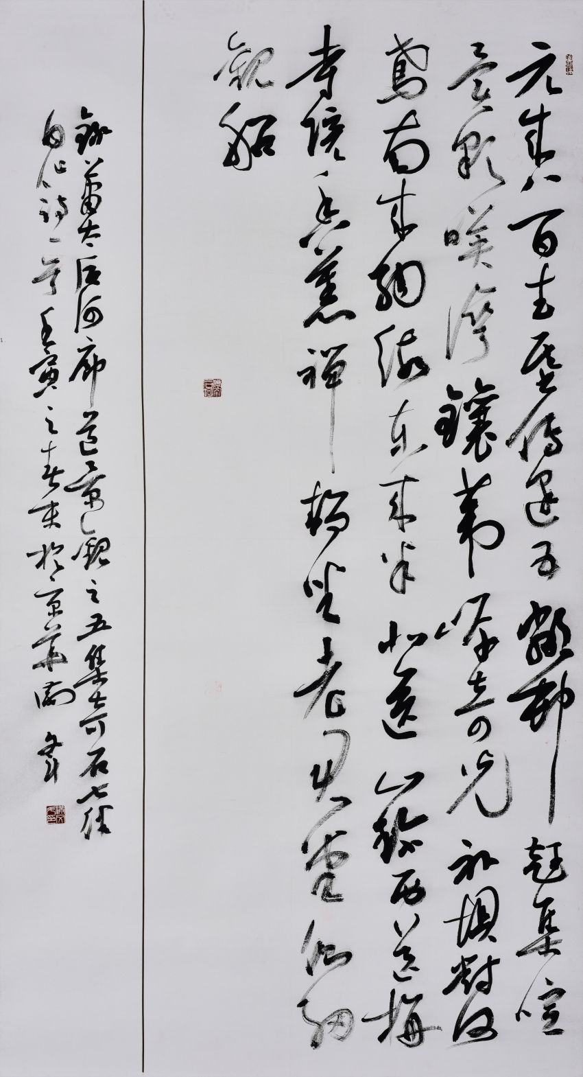 两者在表现手段和目的上具有相似之处,都强调表现精神内涵和情感体验。他的书法通过线条的勾勒、结构的安排以及笔墨的运用,展现出独特的韵律和节奏感,情感状态和思想内涵。他的诗词楹联则通过语言的韵律、意象的营造以及意境的传达,展现出情感世界和精神风貌。他在书写过程中,通过笔墨运用,注重字形的结构、线条的美感以及整体的布局,使作品更具有诗意和美感,将诗词楹联的内涵和意境表现得更加淋漓尽致。而他诗歌楹联的韵律、意象和意境等元素,为书法创作提供了丰富的灵感和启示,使作品更具表现力和感染力。