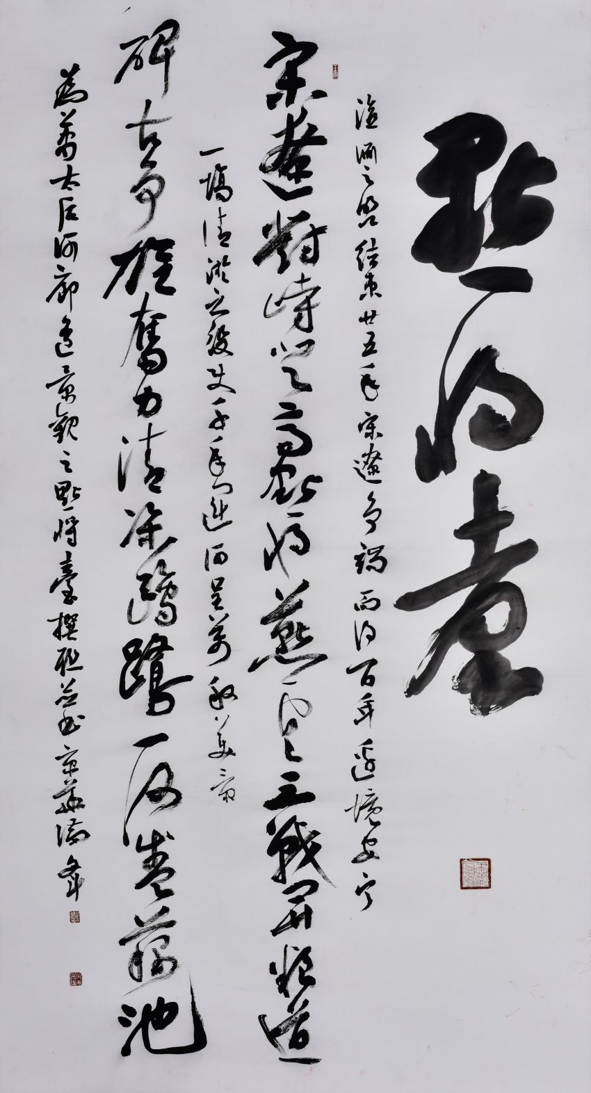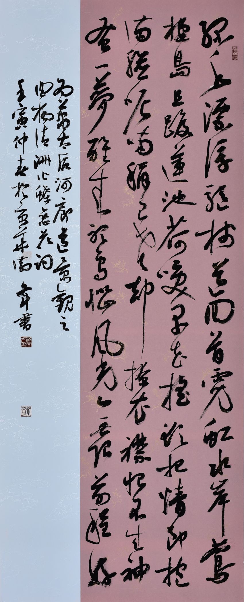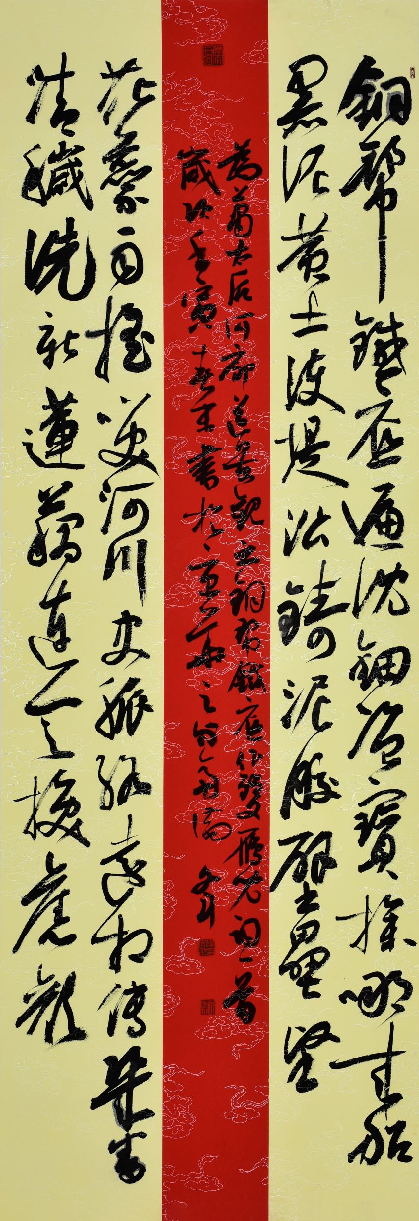 满文斗的书法作品熔古铸今,既有传统的韵味,又有现代的创新。其书法风格独特,笔触细腻,每一笔、每一划都经过精心的推敲和演绎。他书法的形式变化较多。用笔、结字与布局考究多趣,让人耳目一新。其装祯的新颖典雅,古色古香的边绫点缀,更衬托出作品的隽永与书卷气息,品之有味,唇齿留香。他对于书法的执着和热爱,使他的作品充满了灵性和生命力,其书法不仅仅是一种艺术表现形式,更是一种文化传承。他的作品不但兼具“二王”的劲健,米芾的骏快,王铎的奇纵,又具有时代气息。体现了中国传统文化的精髓和价值观,同时也展示了现代人的审美追求。他这种书风的形成,绝非仅仅是天赋与灵感的使然,乃是数十年踏实如一朝乾夕惕的结果。