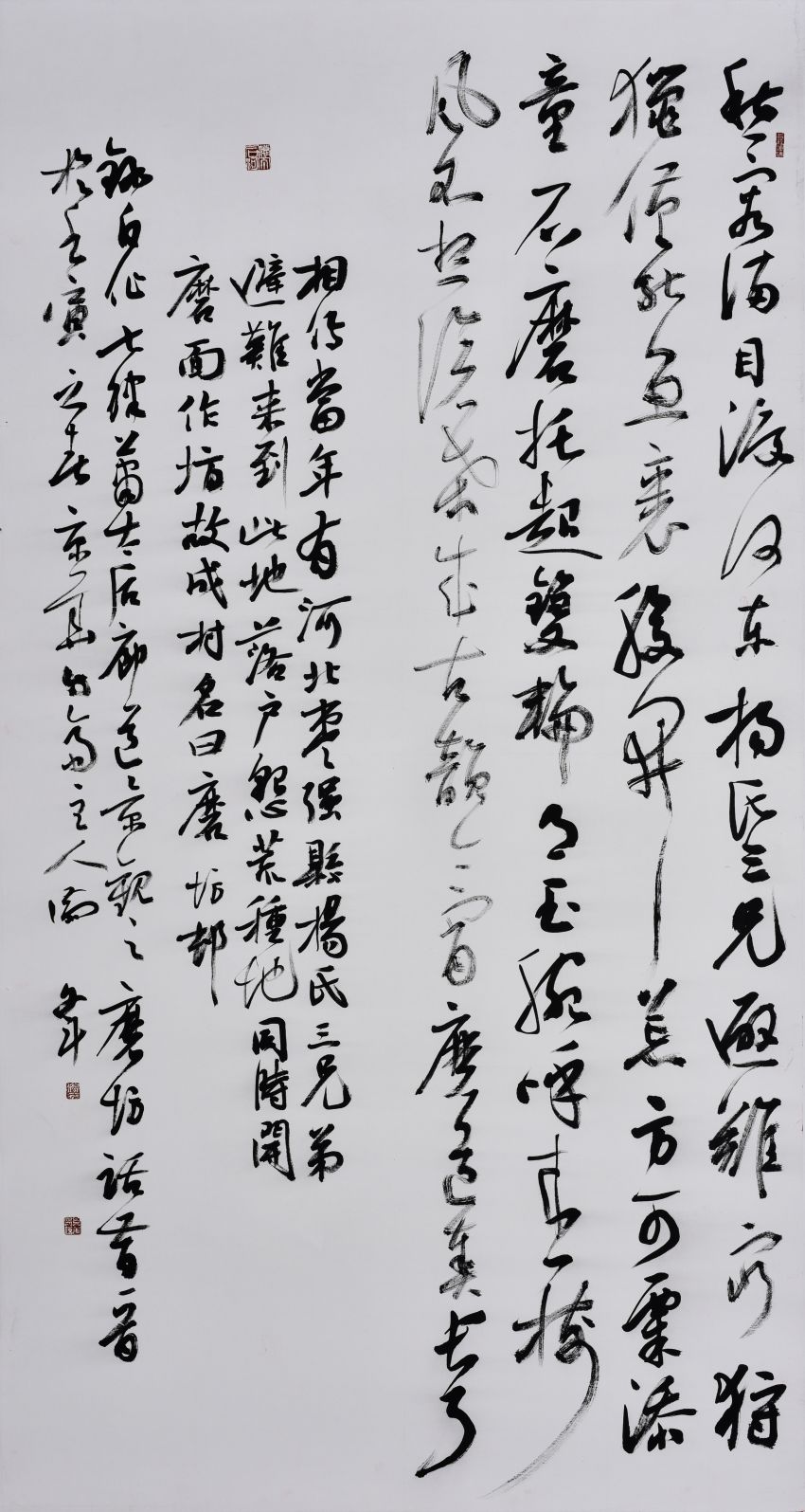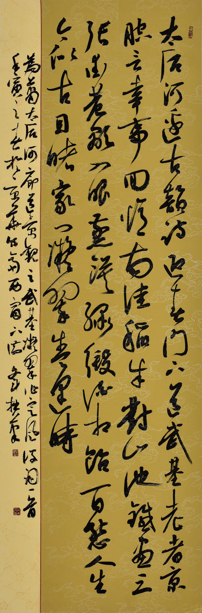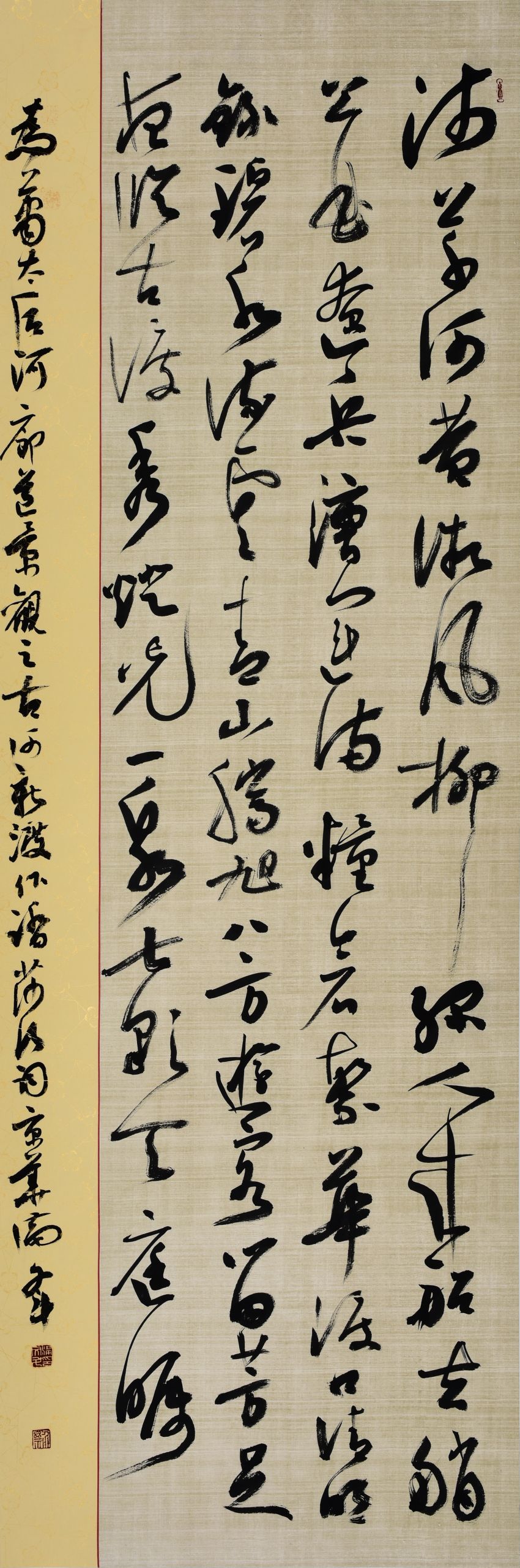 满文斗的书法作品熔古铸今,既有传统的韵味,又有现代的创新。其书法风格独特,笔触细腻,每一笔、每一划都经过精心的推敲和演绎。他书法的形式变化较多。用笔、结字与布局考究多趣,让人耳目一新。其装祯的新颖典雅,古色古香的边绫点缀,更衬托出作品的隽永与书卷气息,品之有味,唇齿留香。他对于书法的执着和热爱,使他的作品充满了灵性和生命力,其书法不仅仅是一种艺术表现形式,更是一种文化传承。他的作品不但兼具“二王”的劲健,米芾的骏快,王铎的奇纵,又具有时代气息。体现了中国传统文化的精髓和价值观,同时也展示了现代人的审美追求。他这种书风的形成,绝非仅仅是天赋与灵感的使然,乃是数十年踏实如一朝乾夕惕的结果。